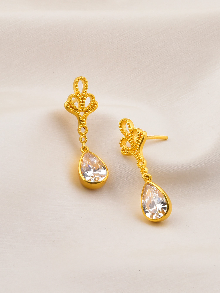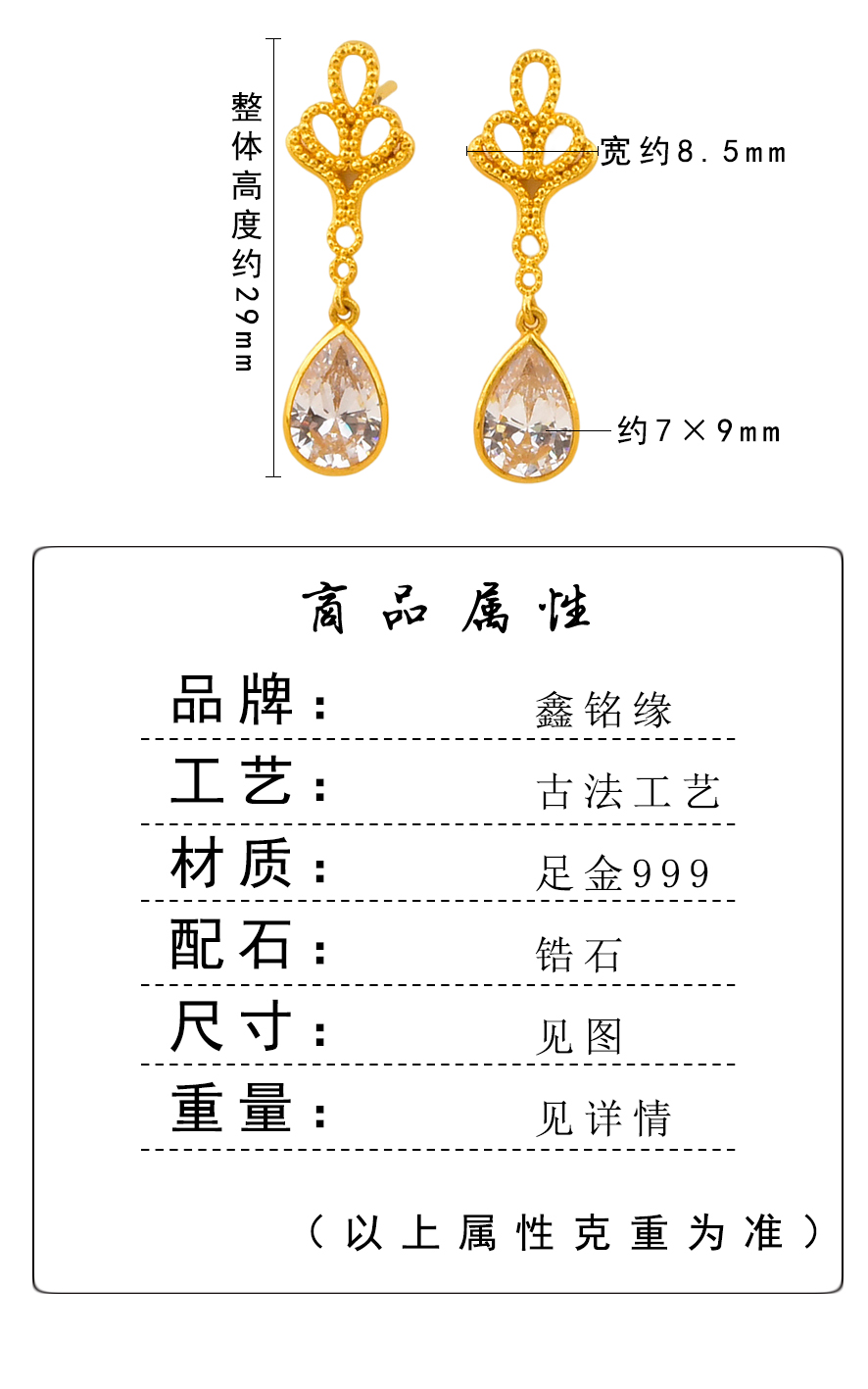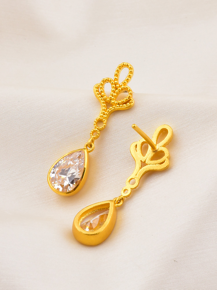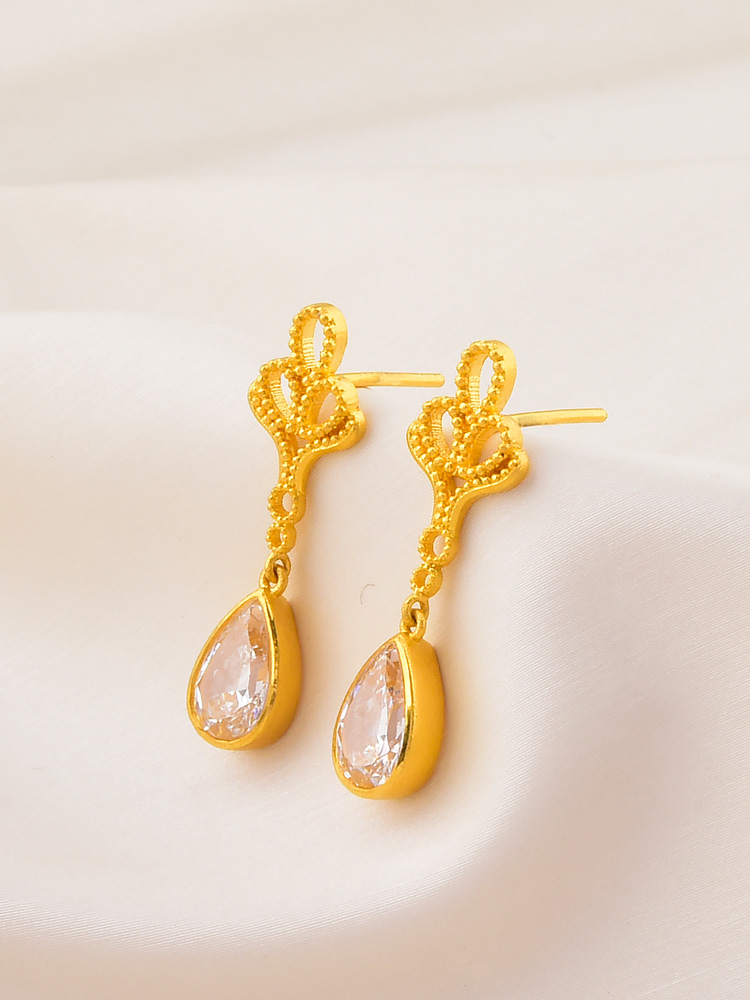 足金凤尾点钻耳坠