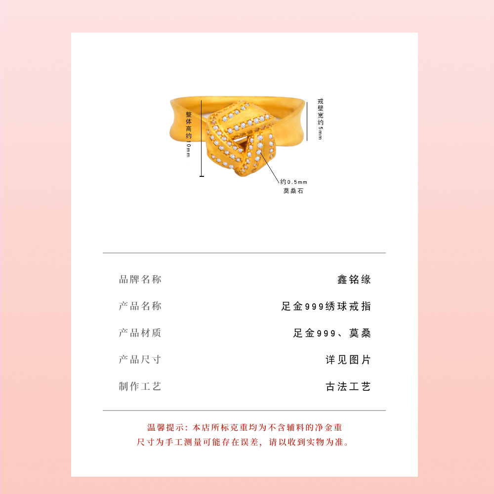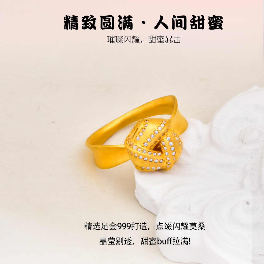 足金点钻绣球戒指