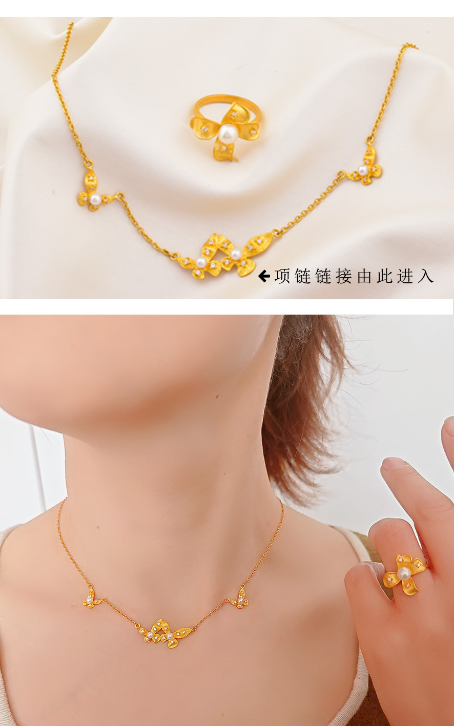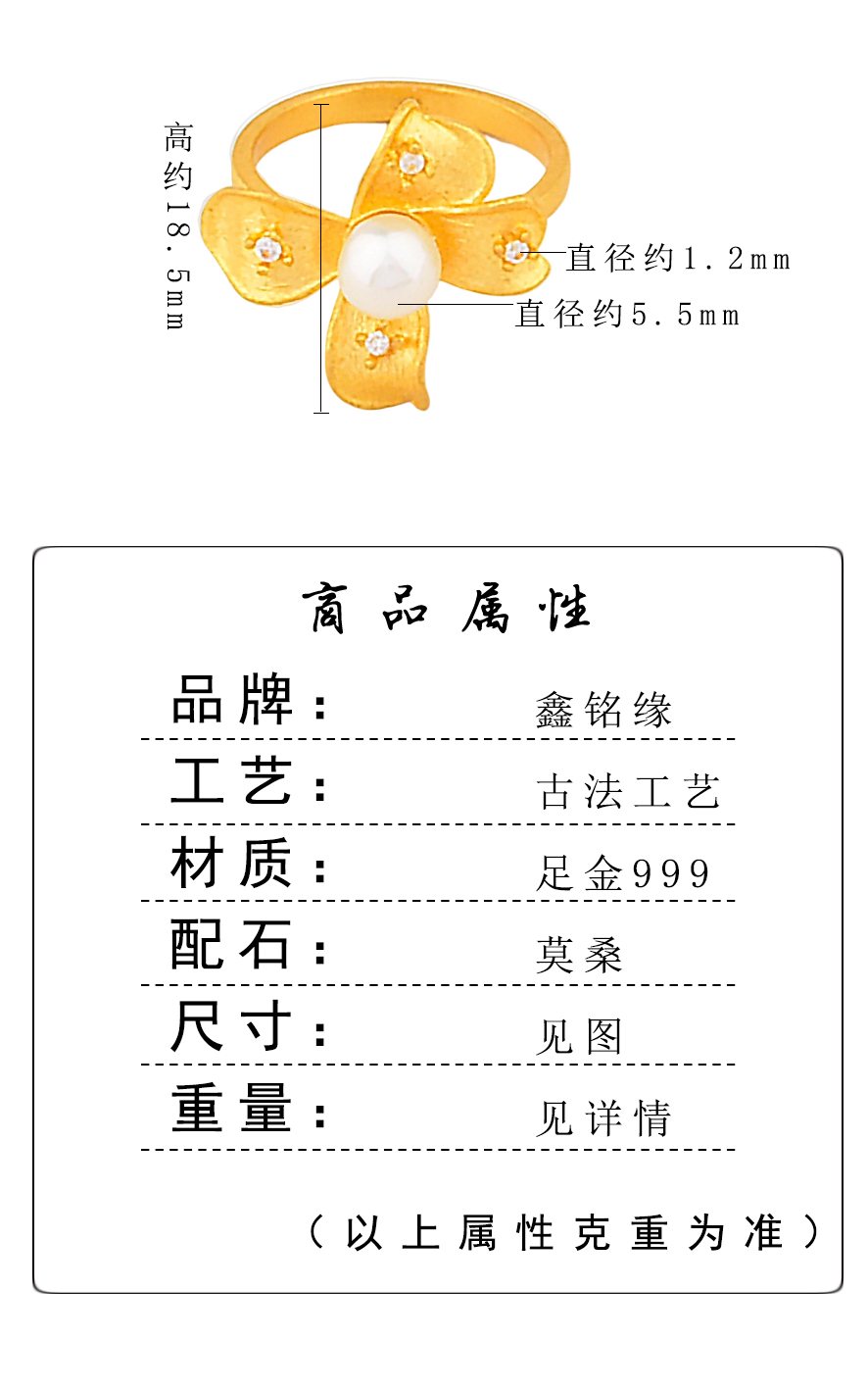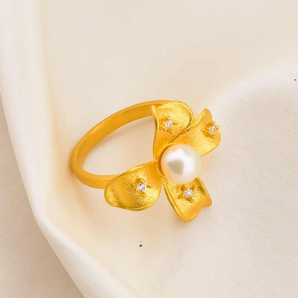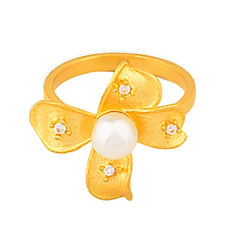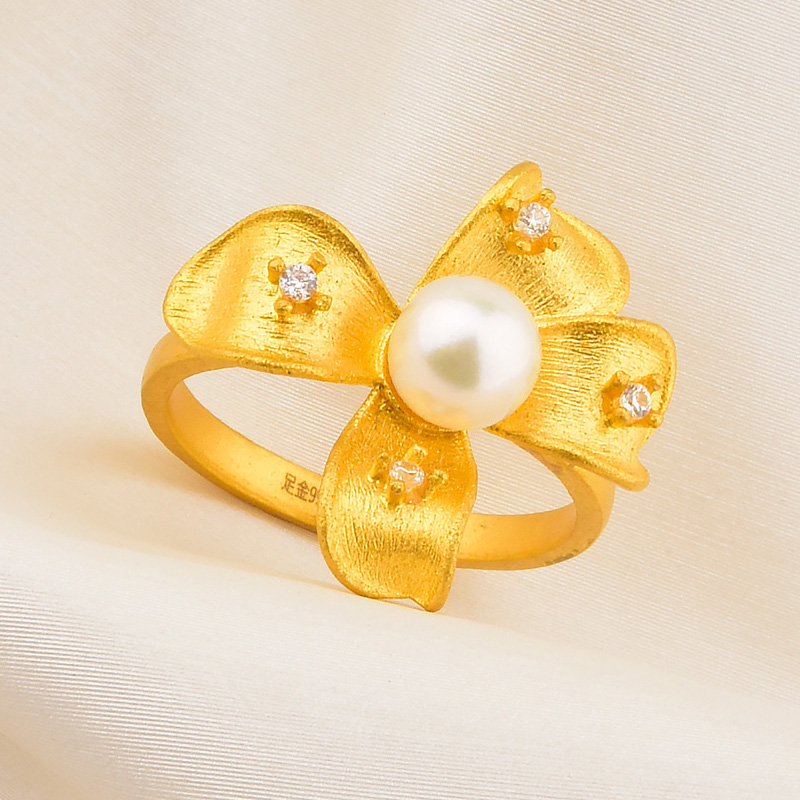 足金点钻珍珠玉兰花戒指