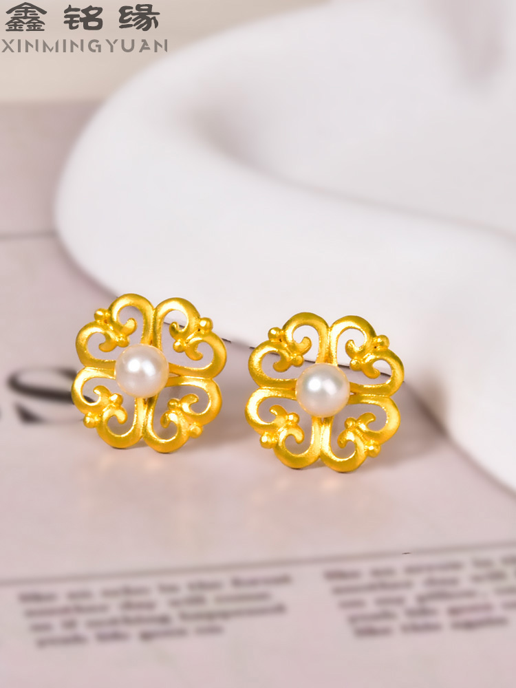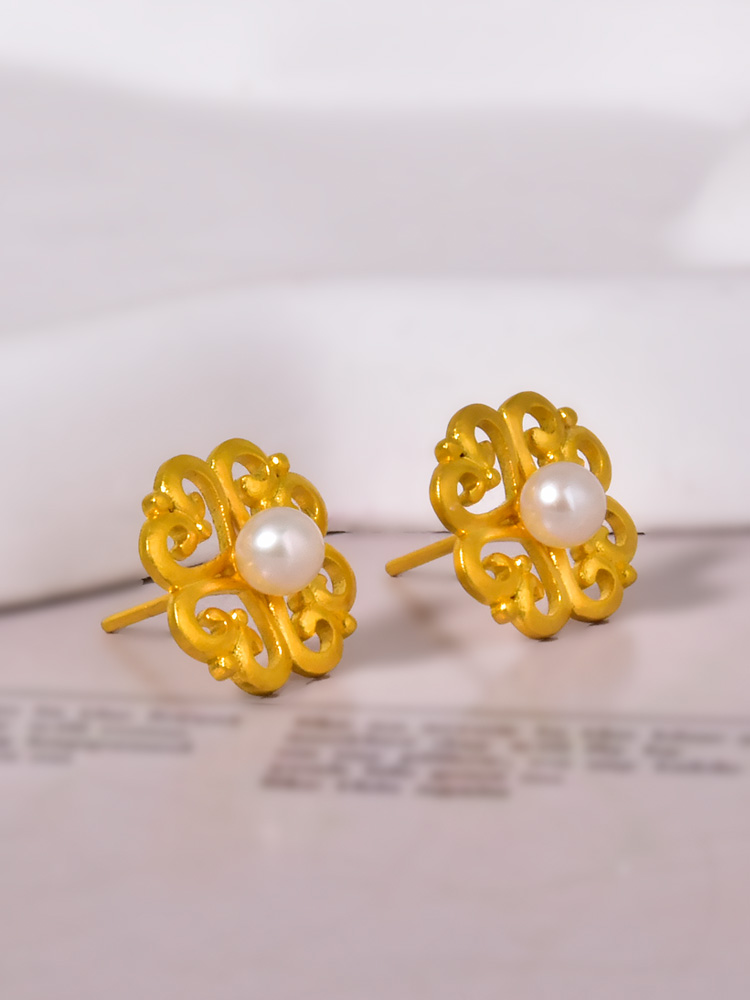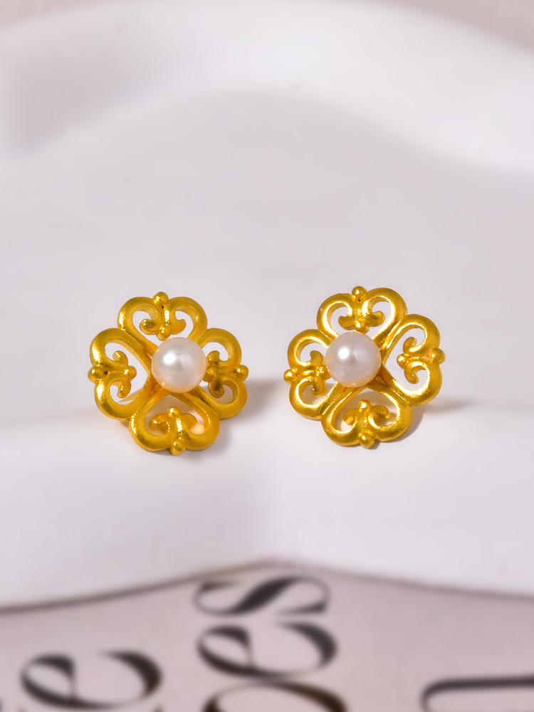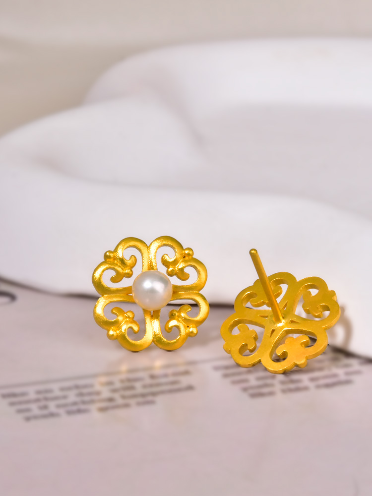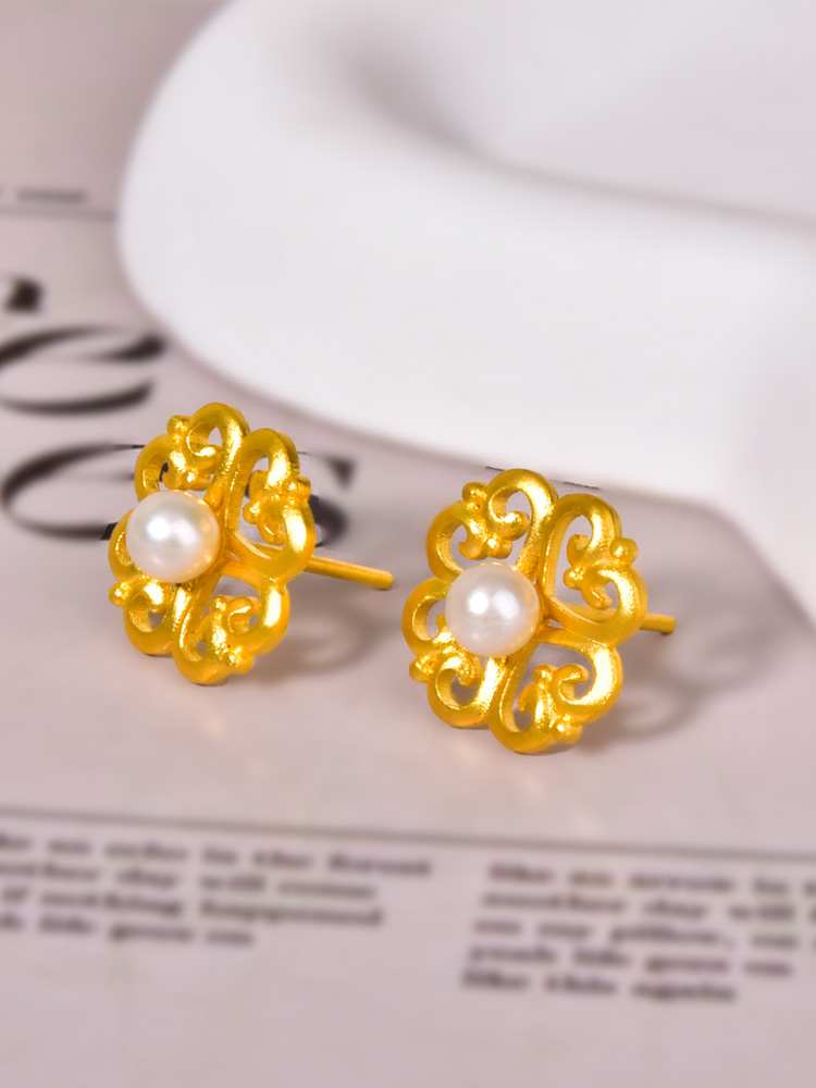 足金如意珍珠耳钉