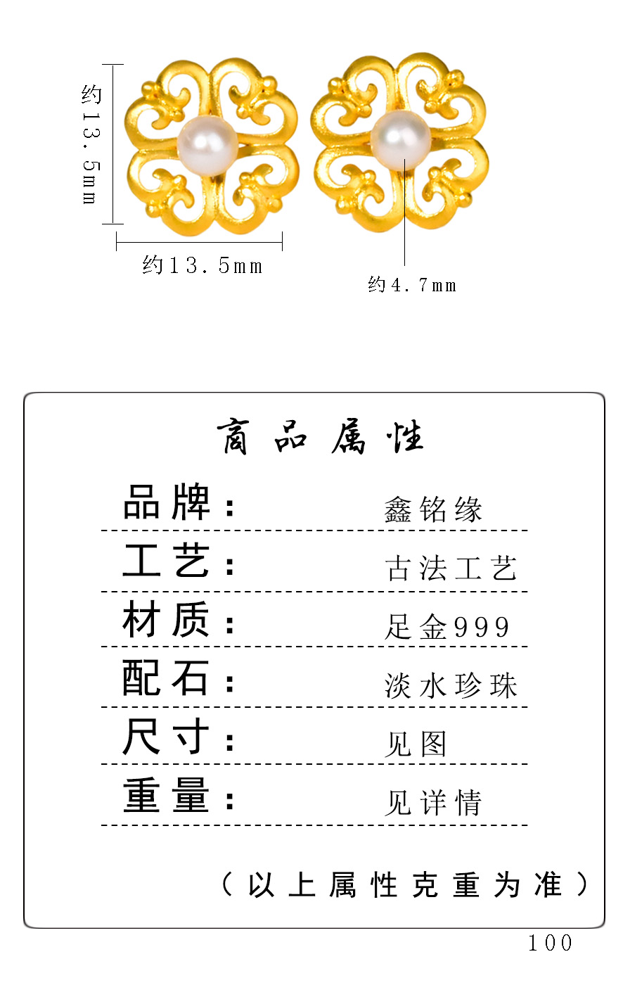 高约13.5mm,宽约13.5mm,珍珠约4.7mm