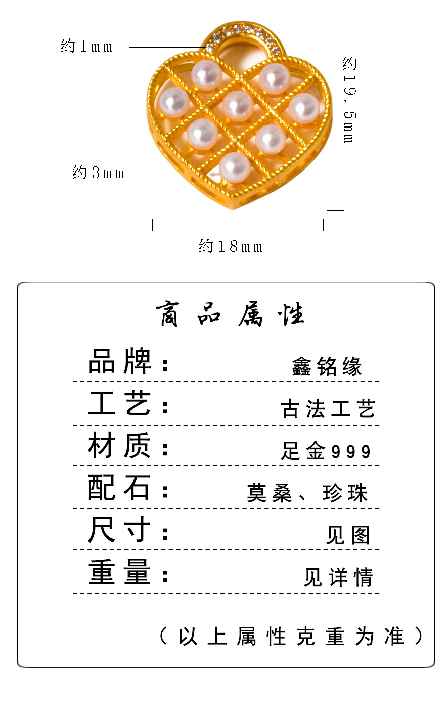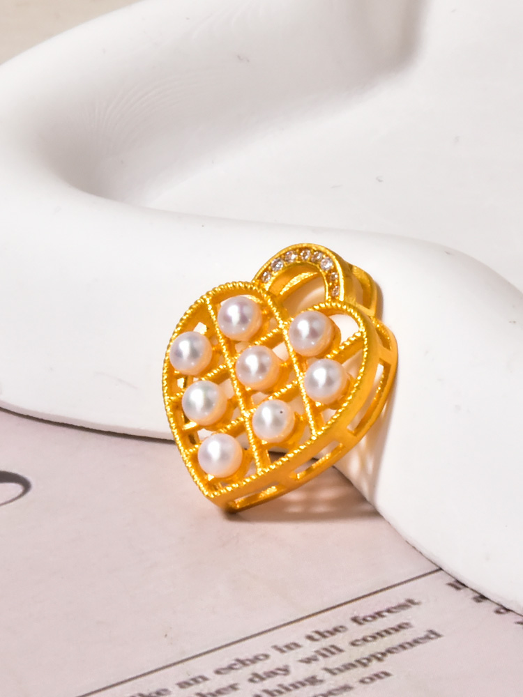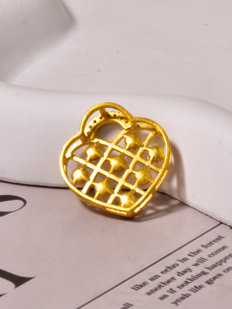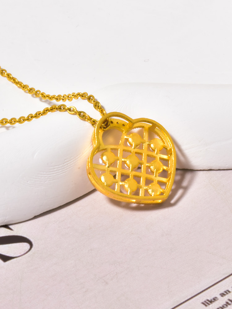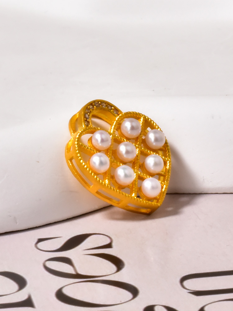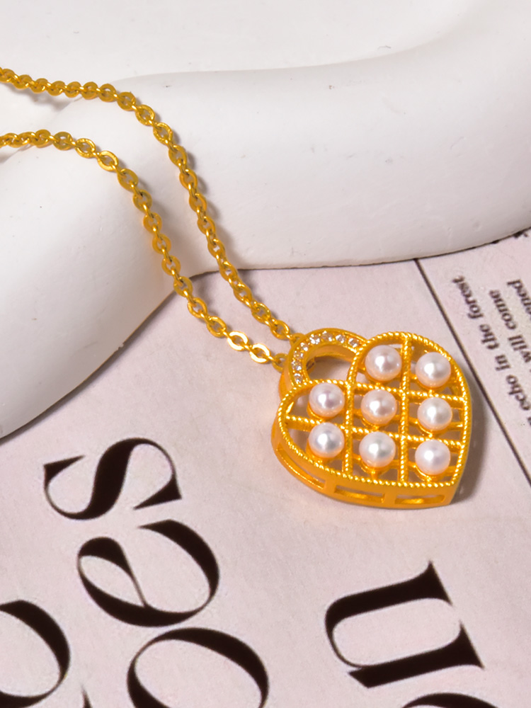 足金珍珠爱心锁吊坠