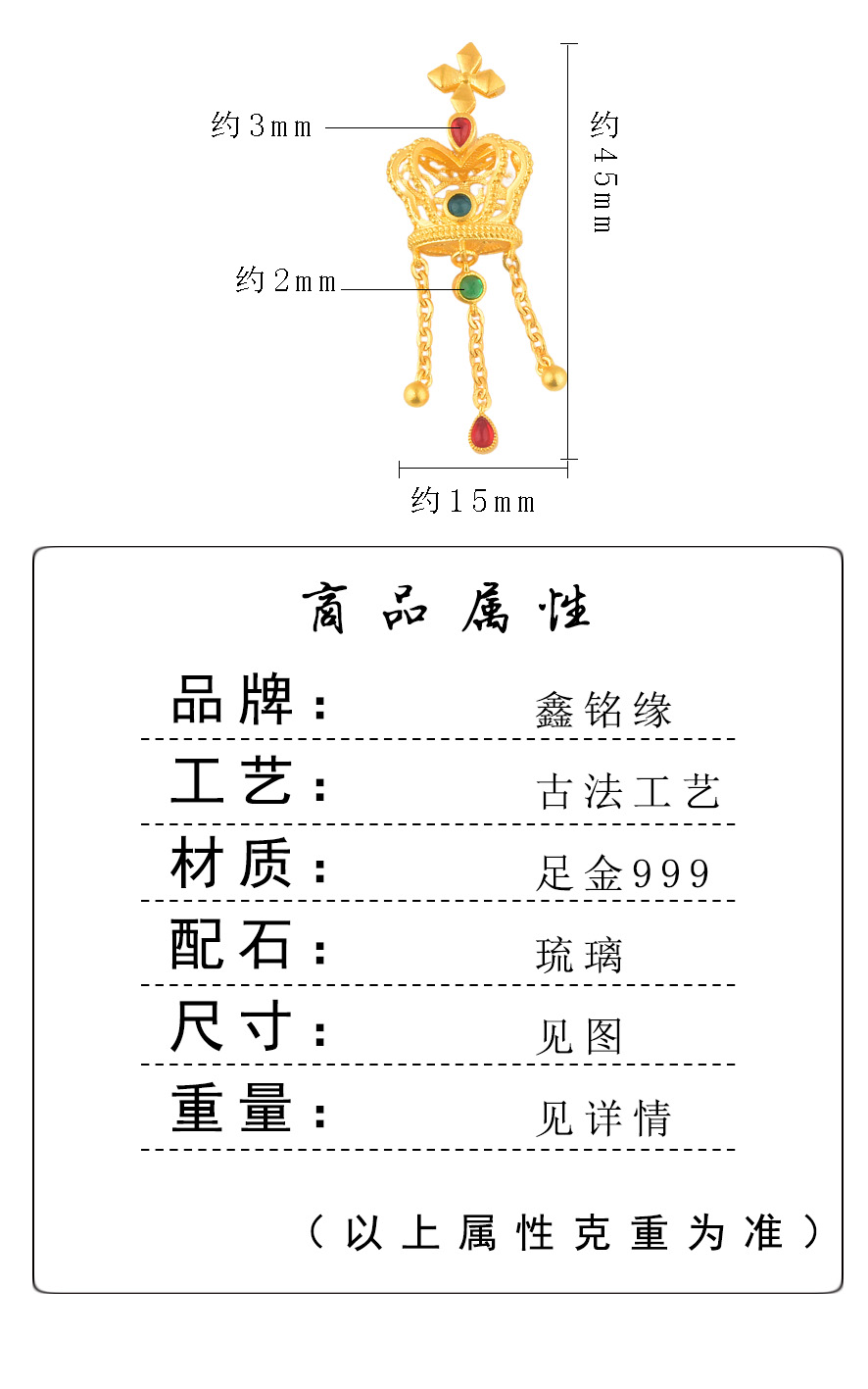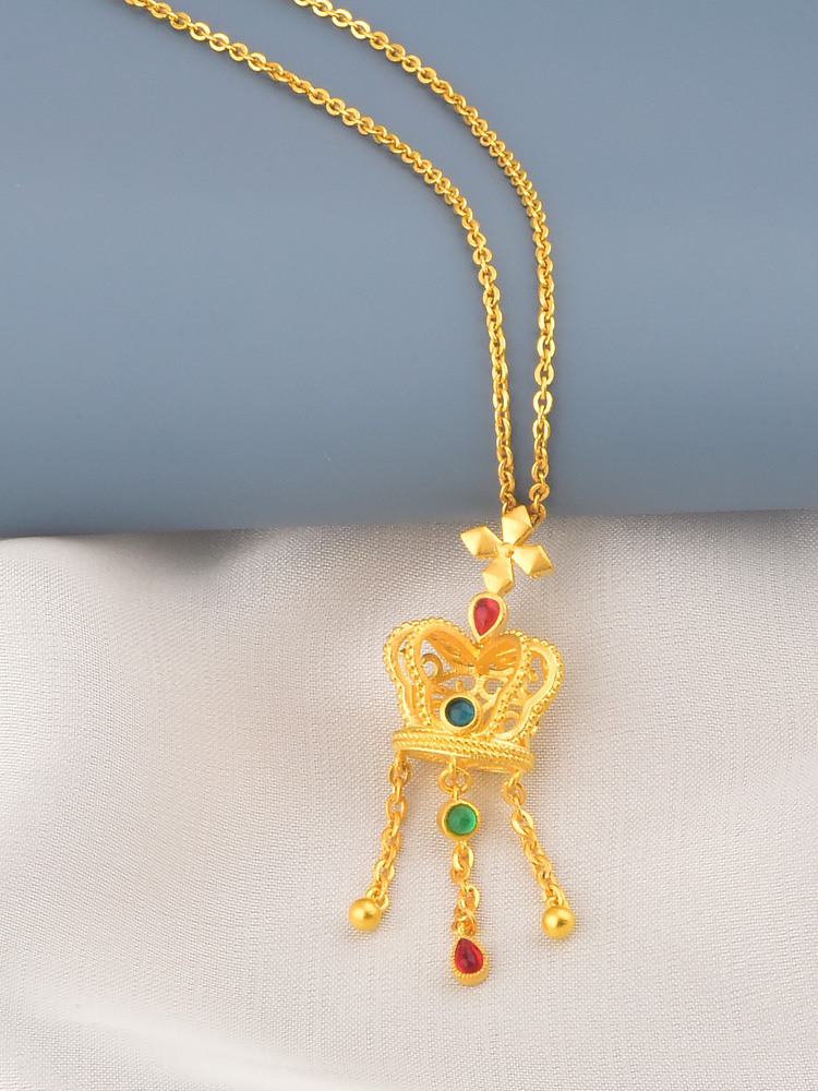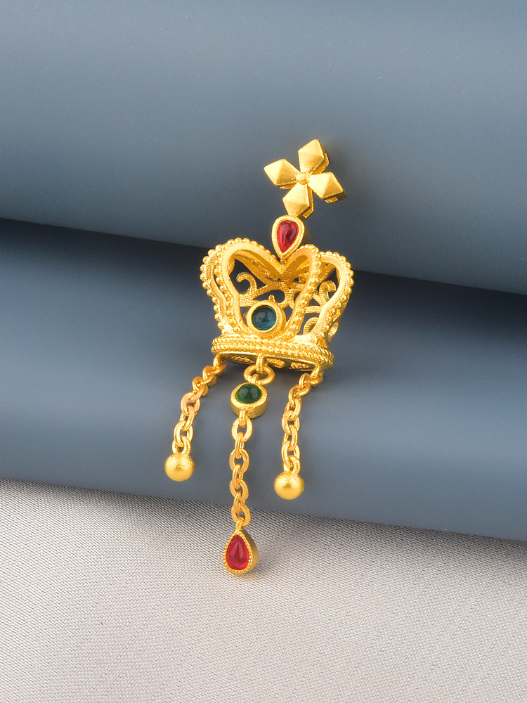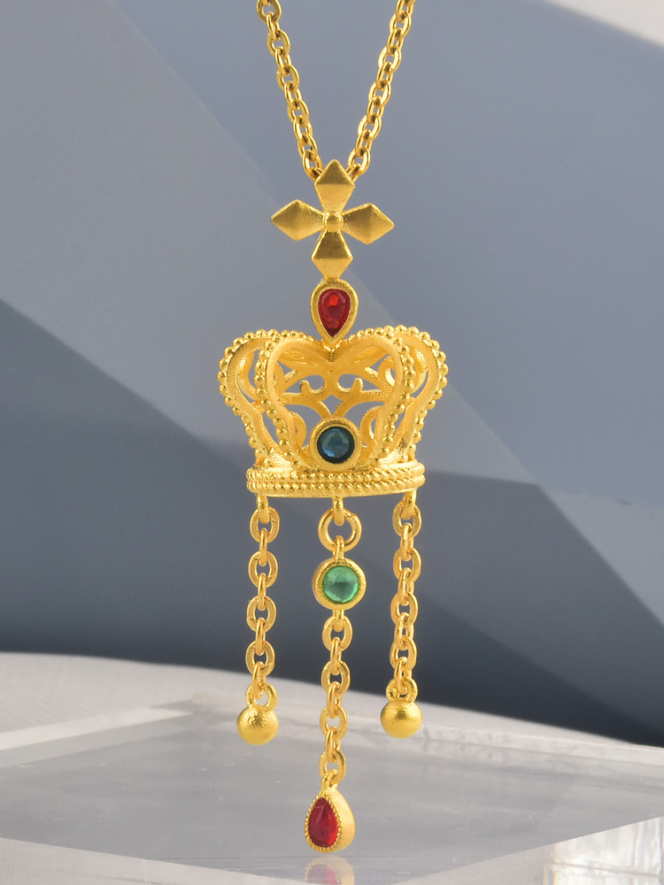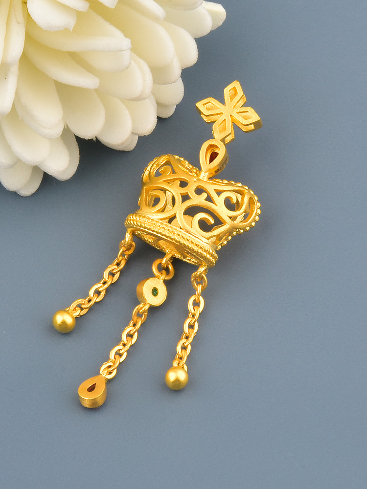 足金风车皇冠红水滴流苏吊坠