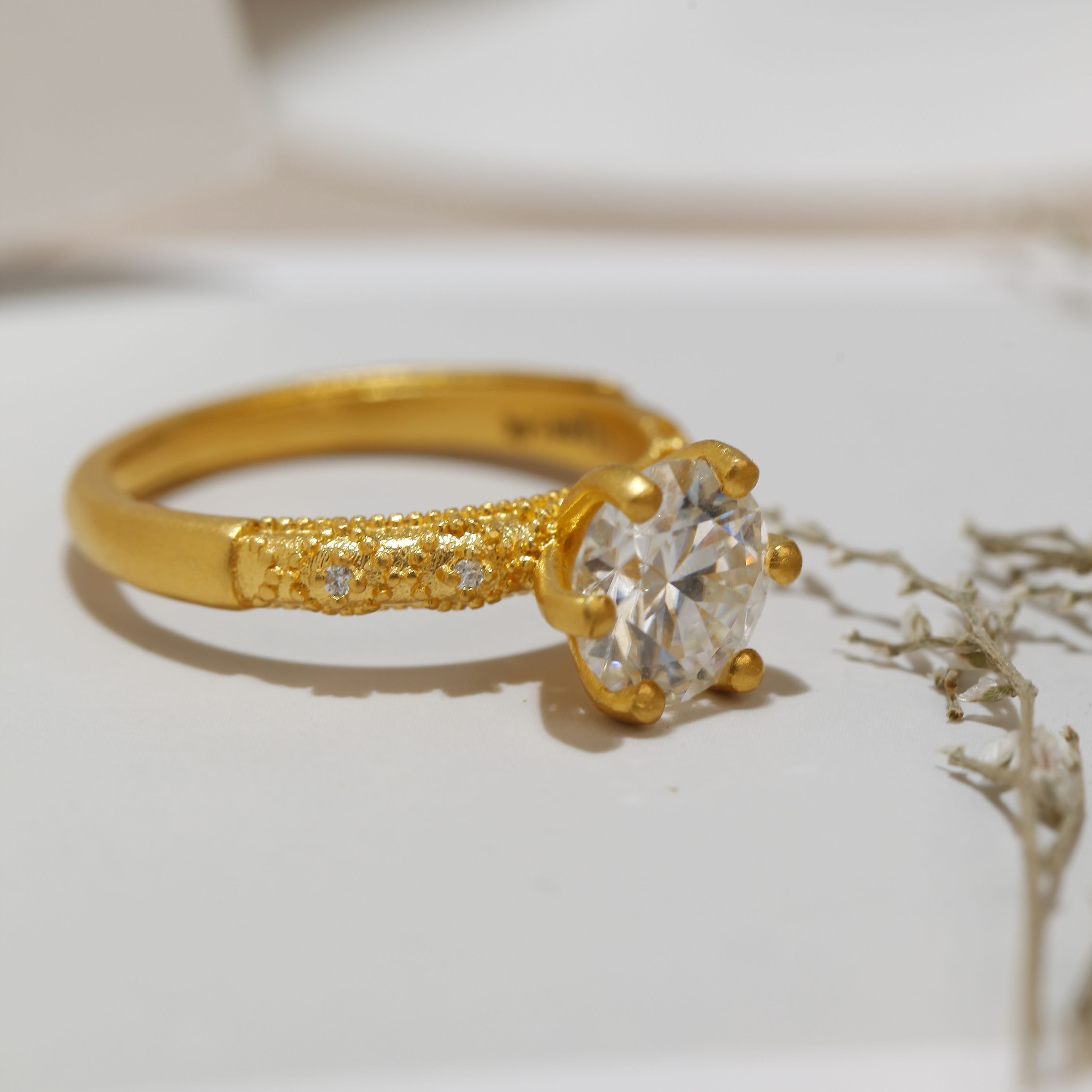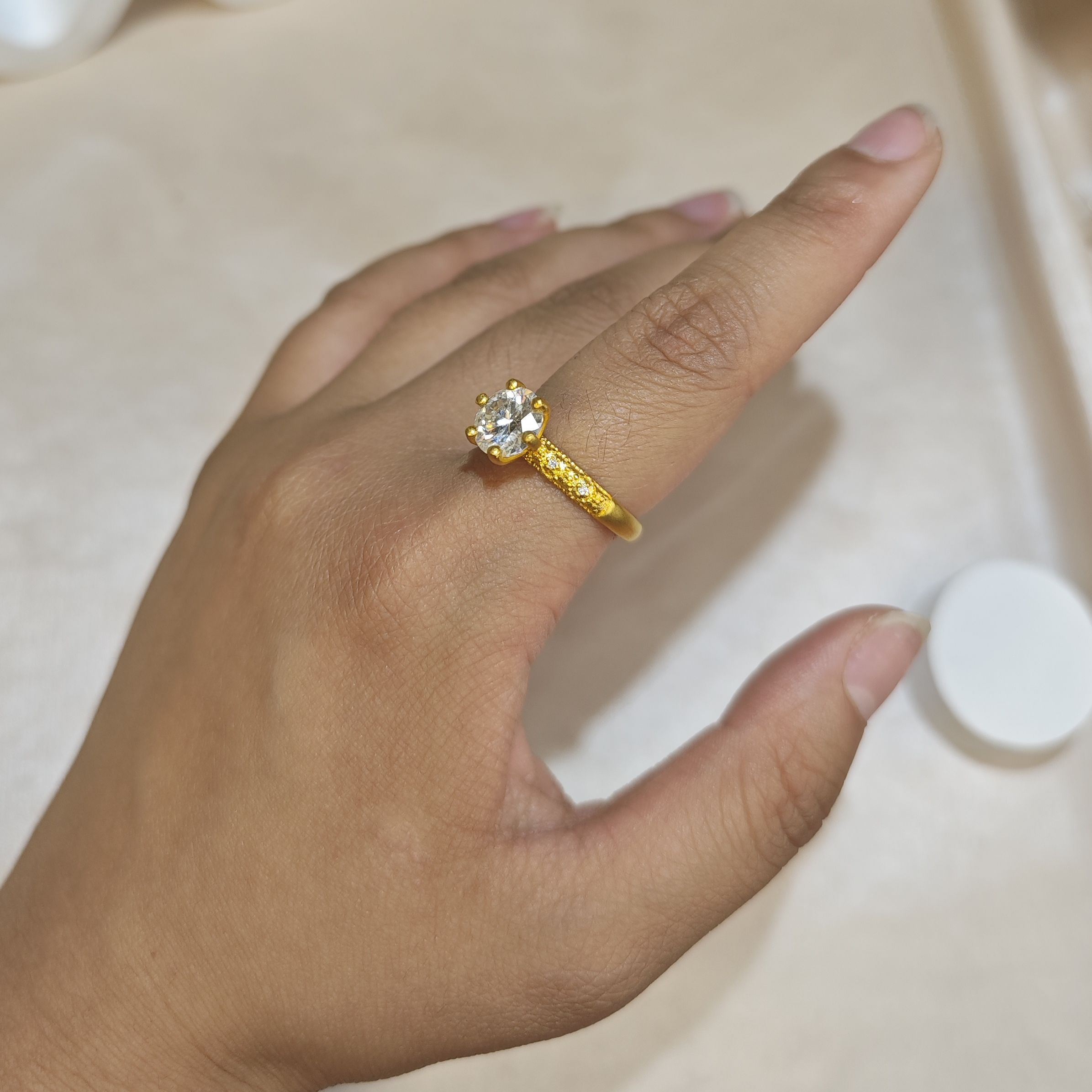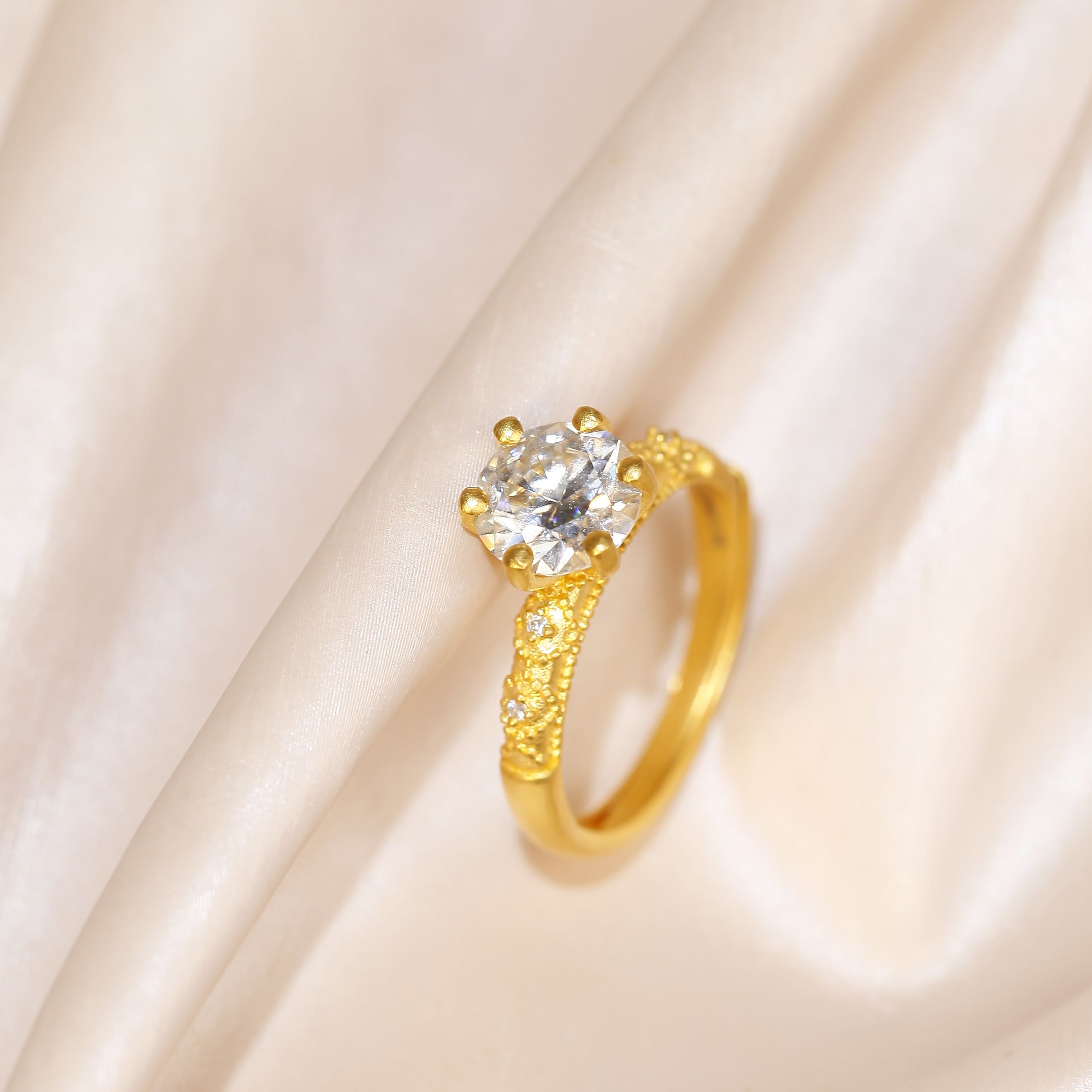 足金复古点钻克拉公主戒指