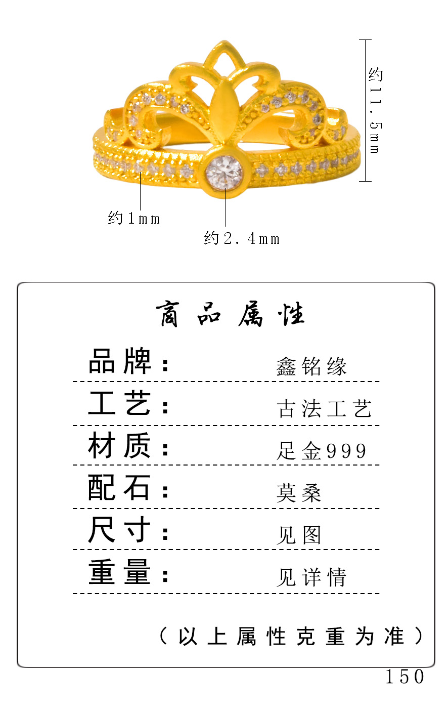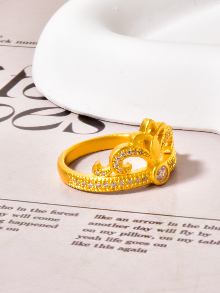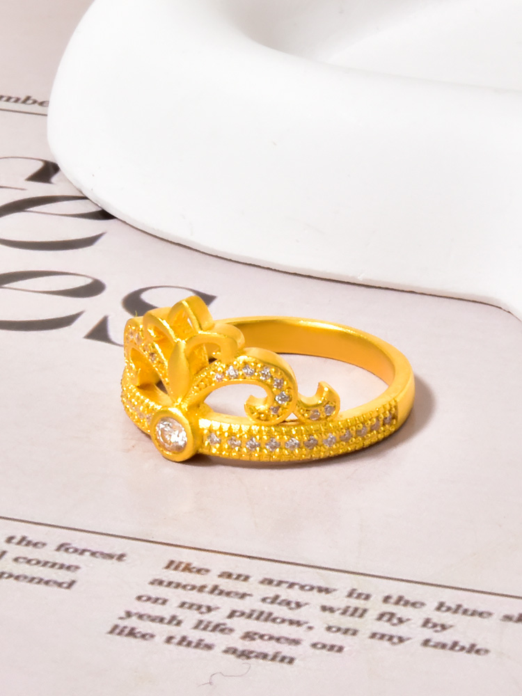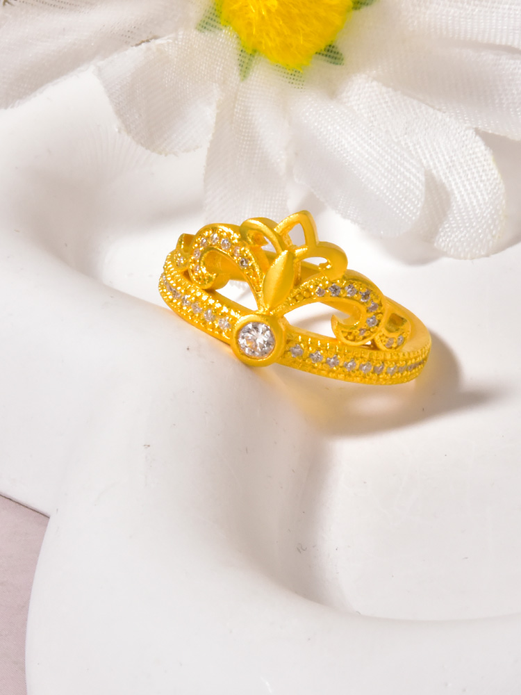 足金半圈点钻烟花王冠戒指