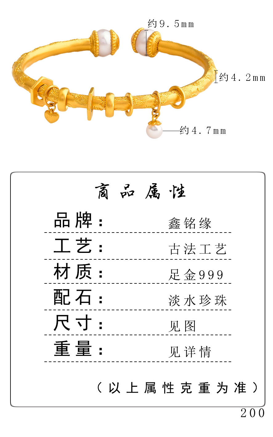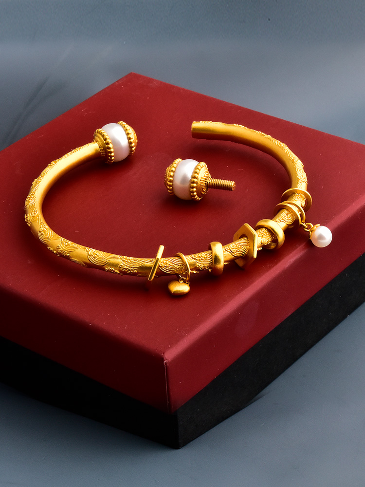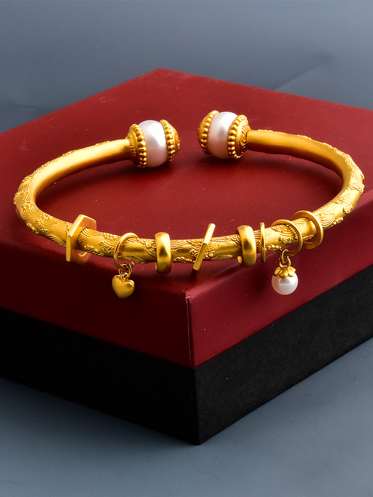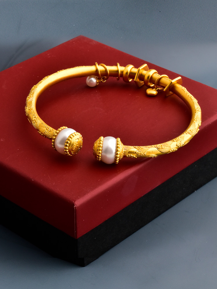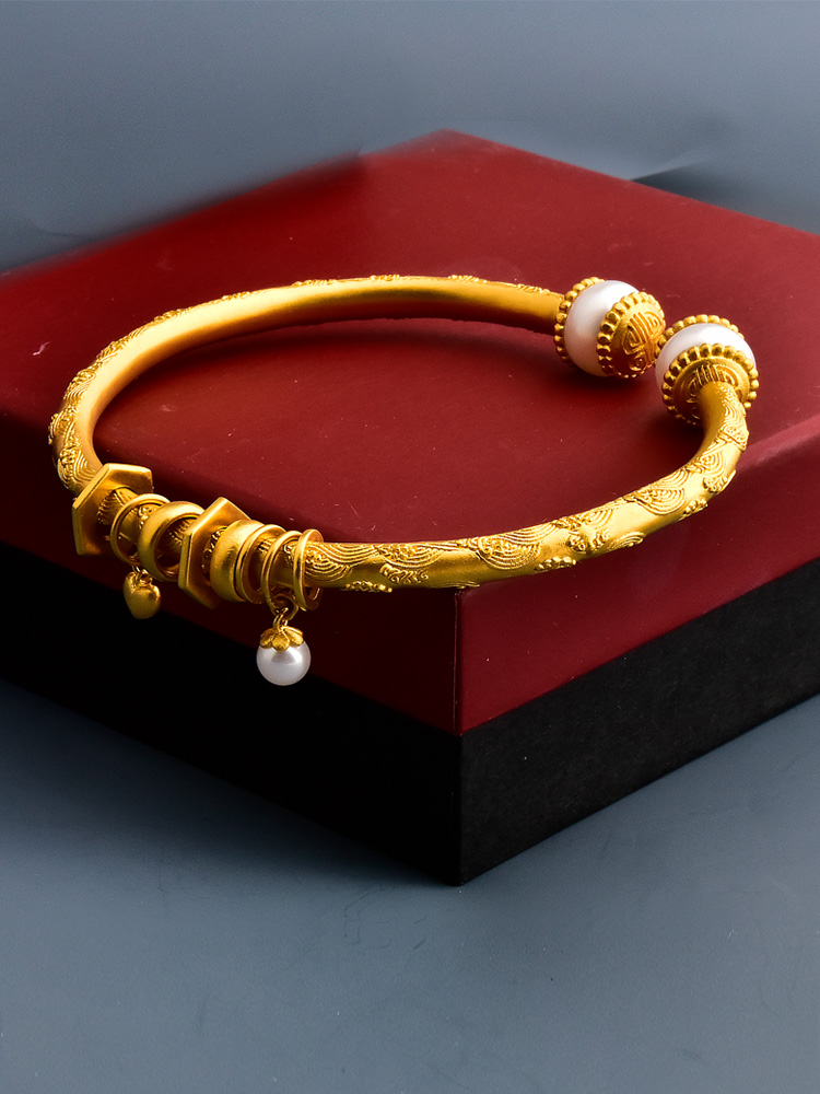 足金珍珠唐纹跑环手镯