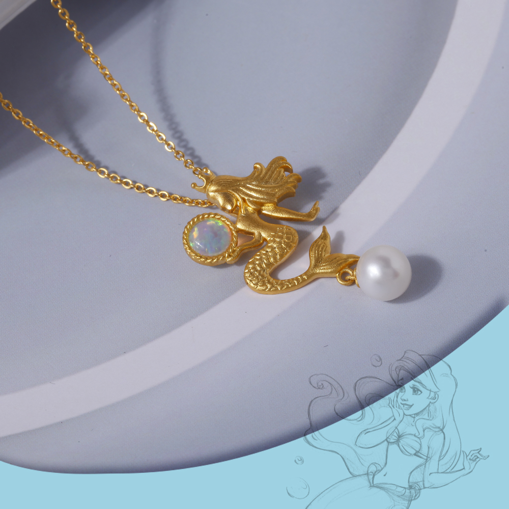 足金美人鱼吊坠