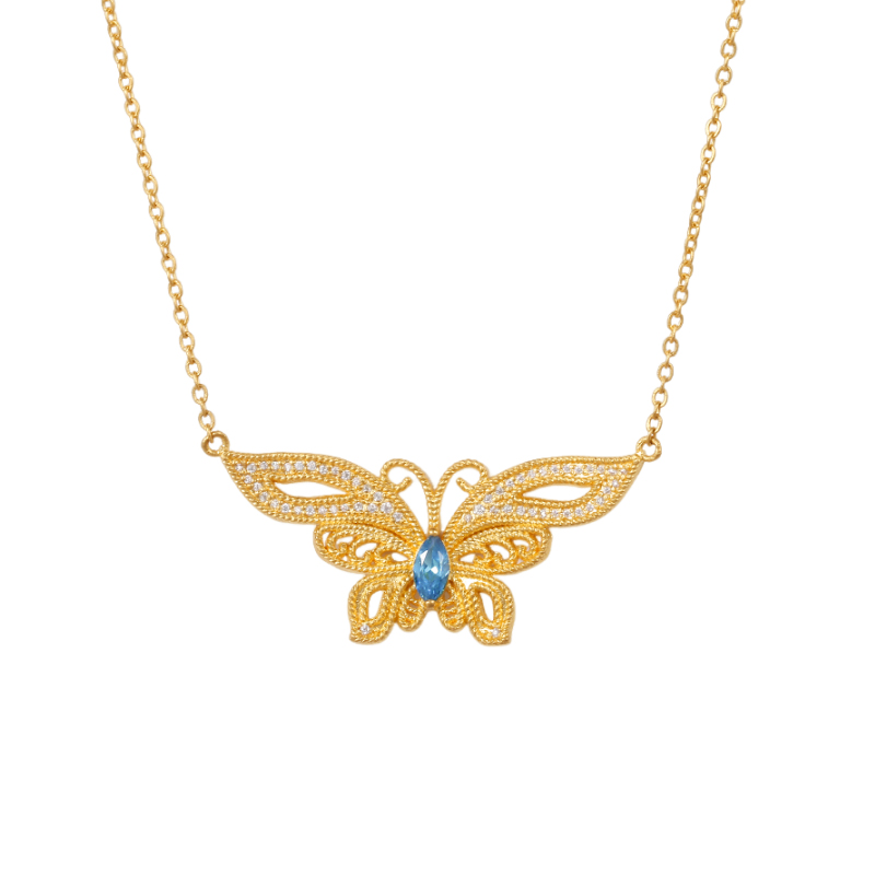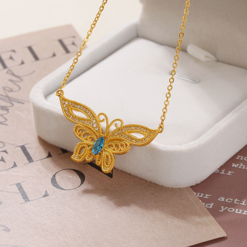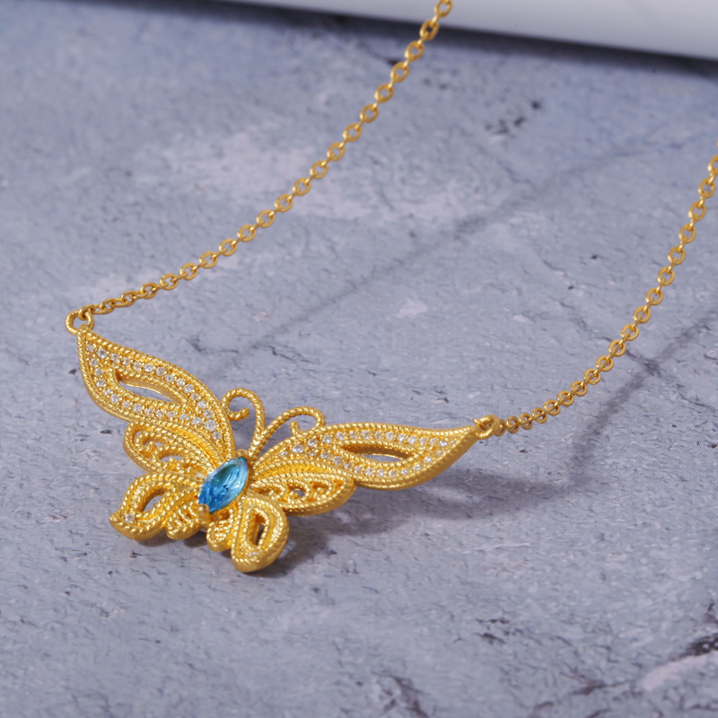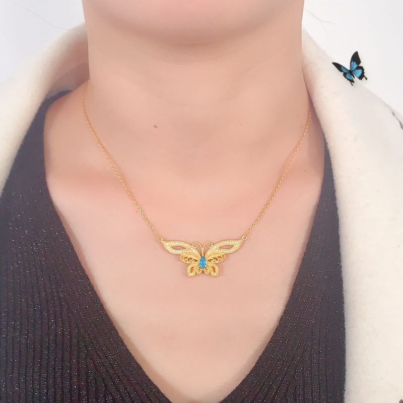 足金点钻梦蝶项链