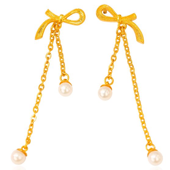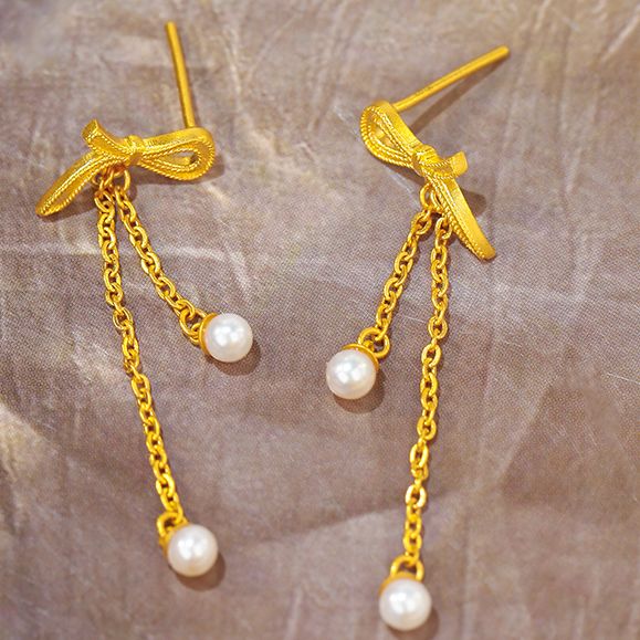 足金流苏飘带蝴蝶结耳坠