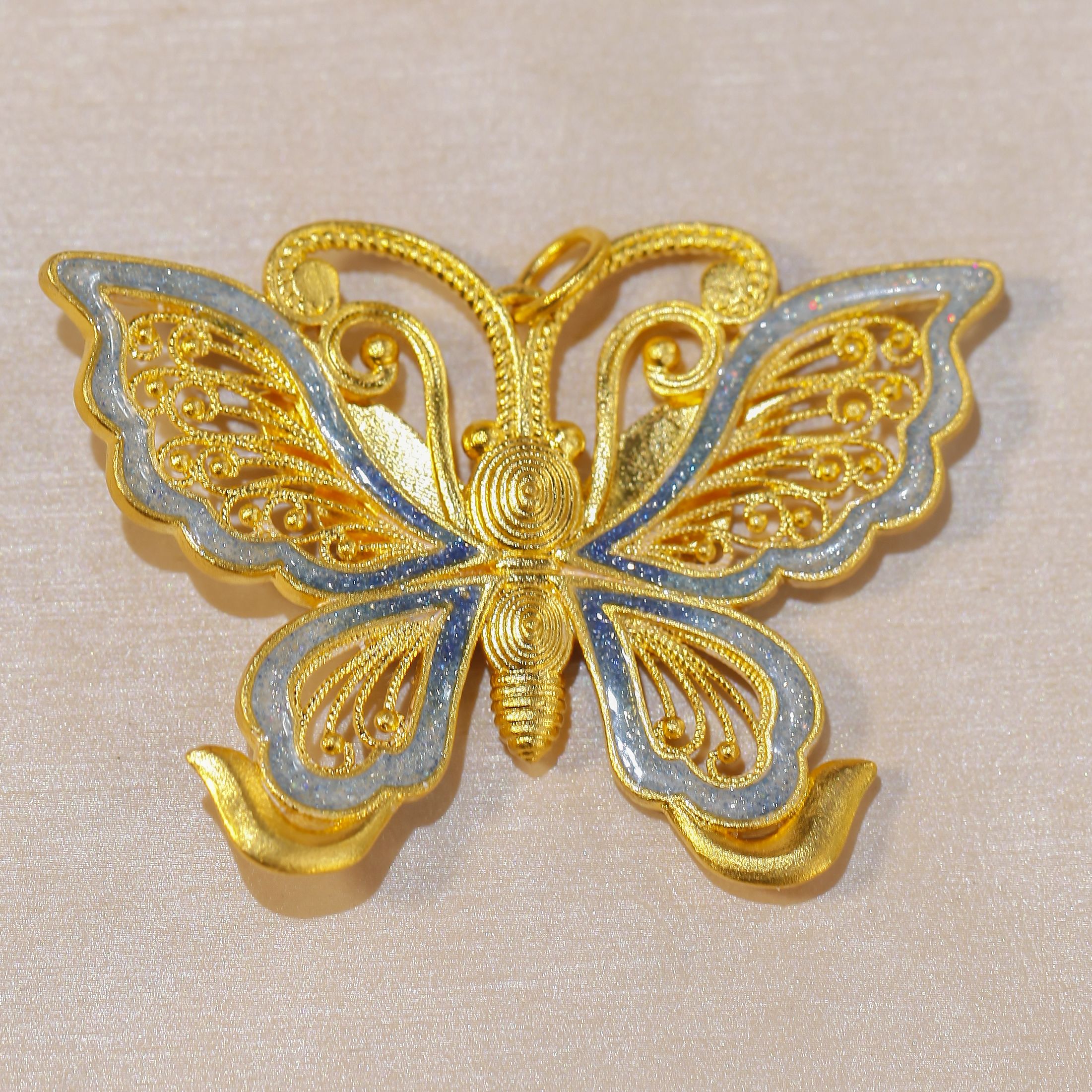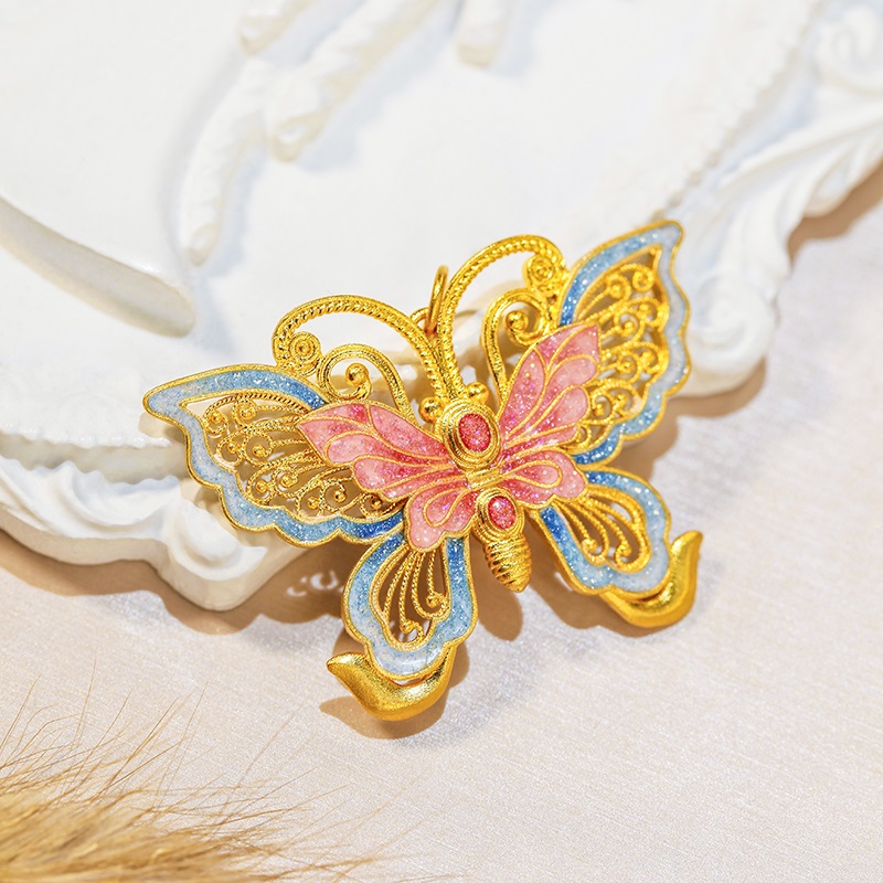 足金珐琅蝴蝶吊坠