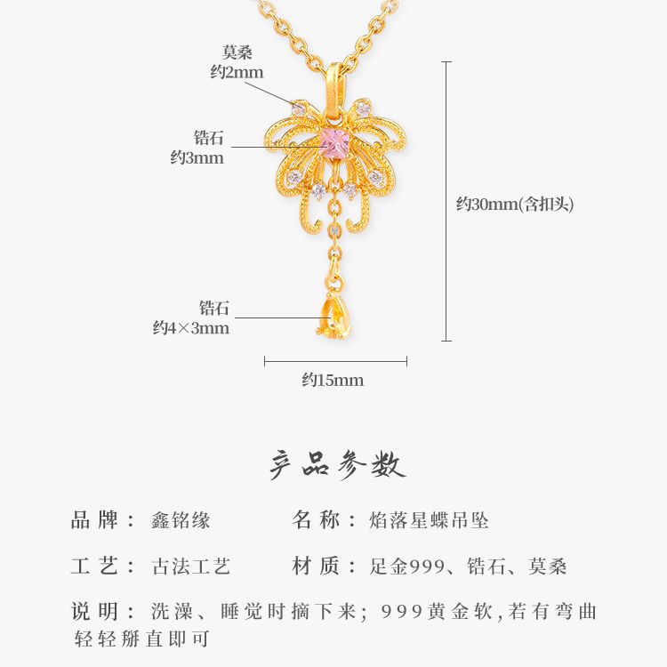 足金焰落星蝶项链