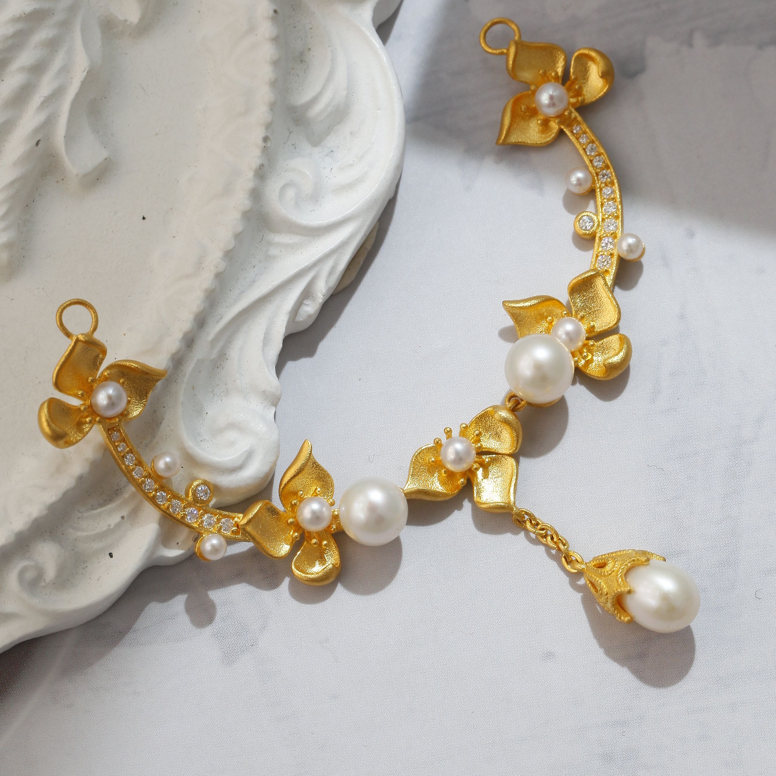 足金丁香珍珠点钻项链
