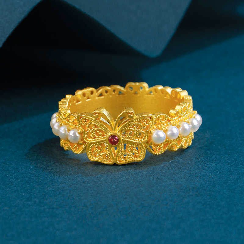 足金福运蝶至戒指