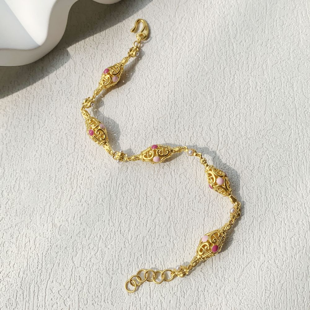 足金云缕金章手链