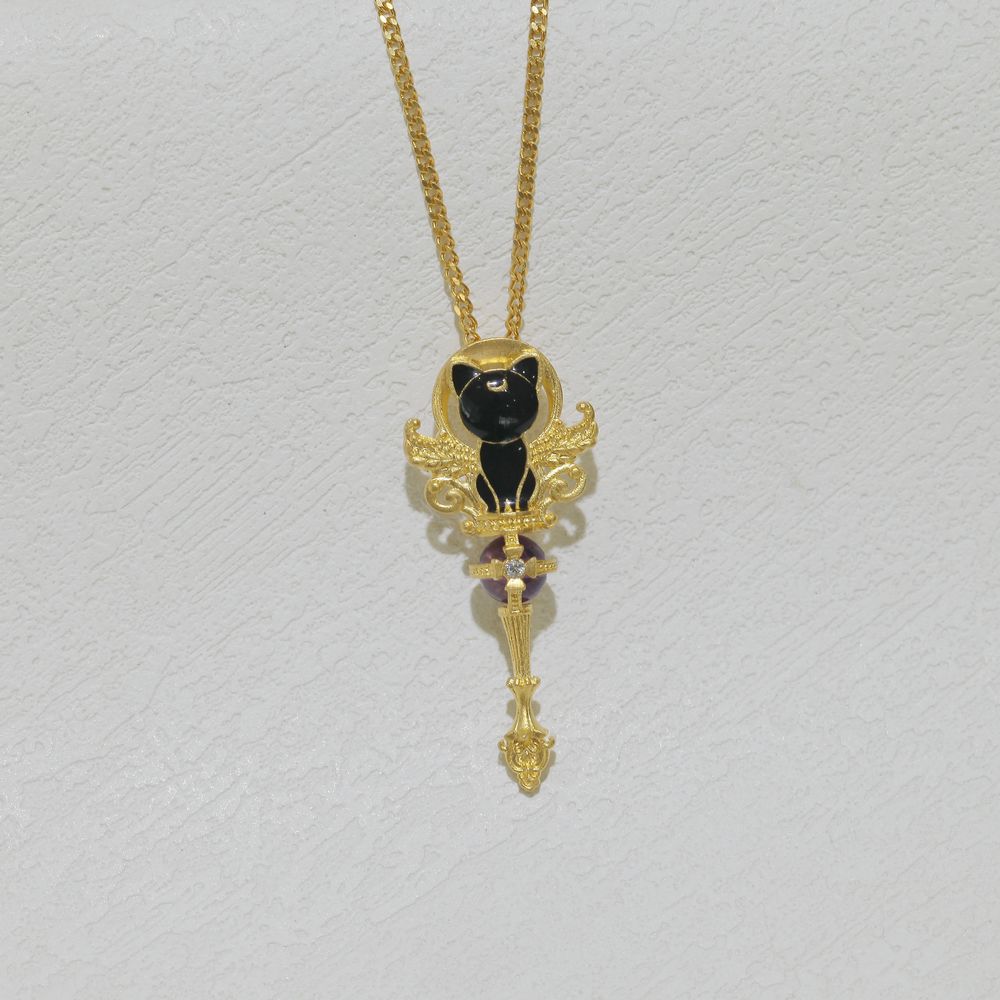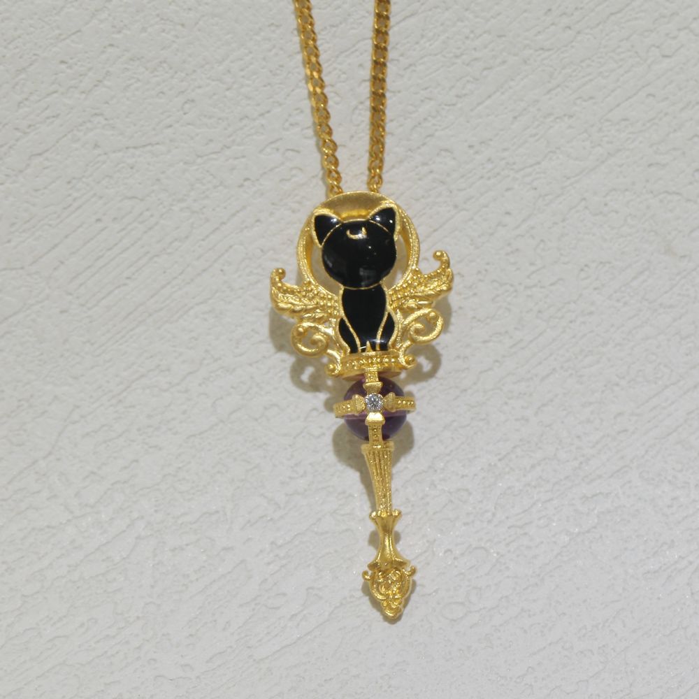 足金露娜猫权杖吊坠