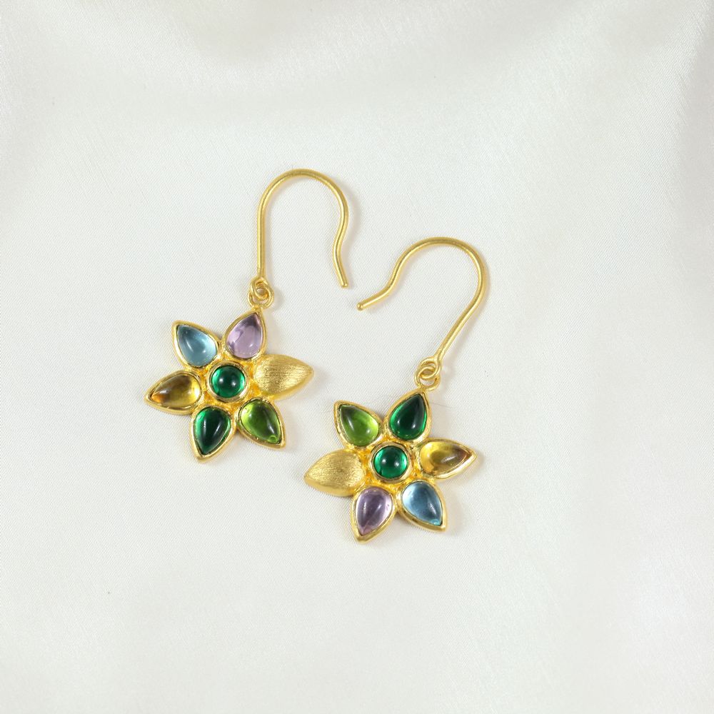 足金五彩莲耳坠
