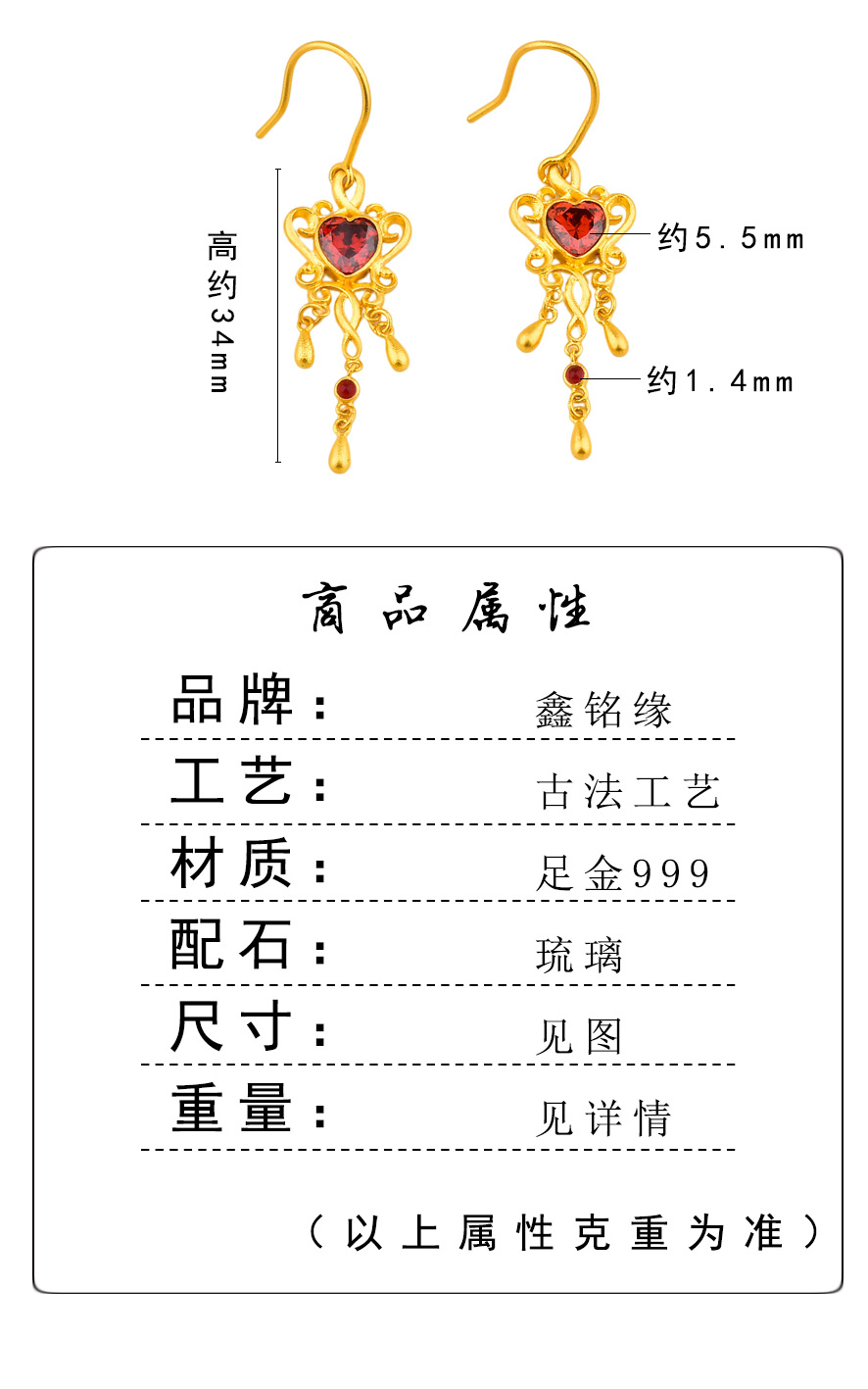 足金幻彩耳坠