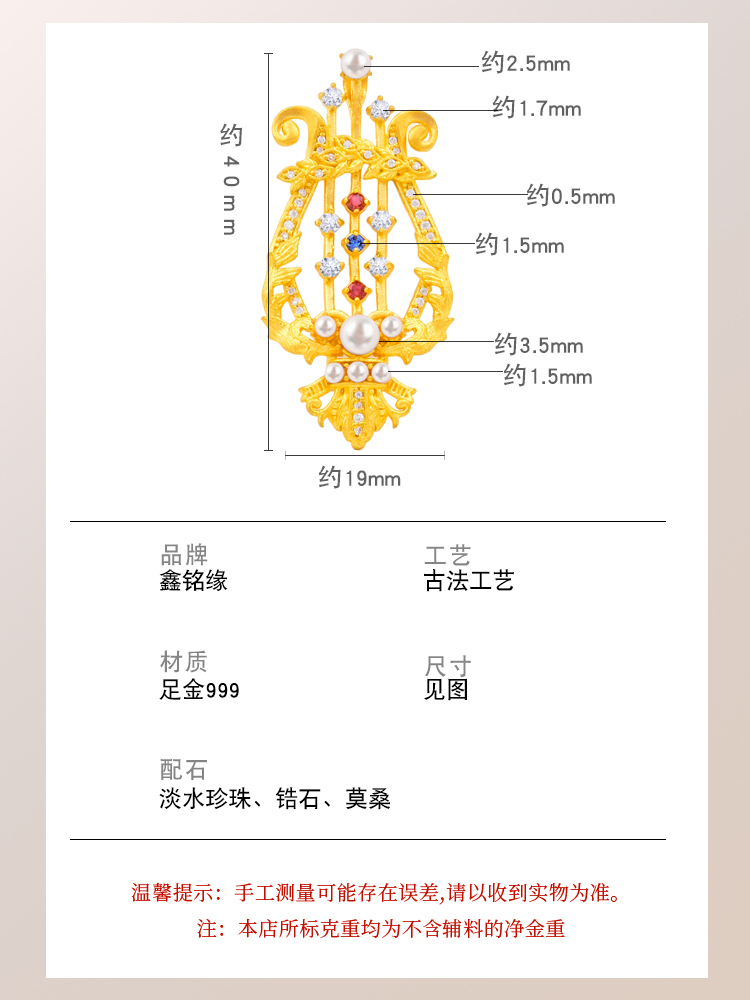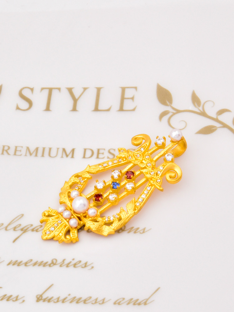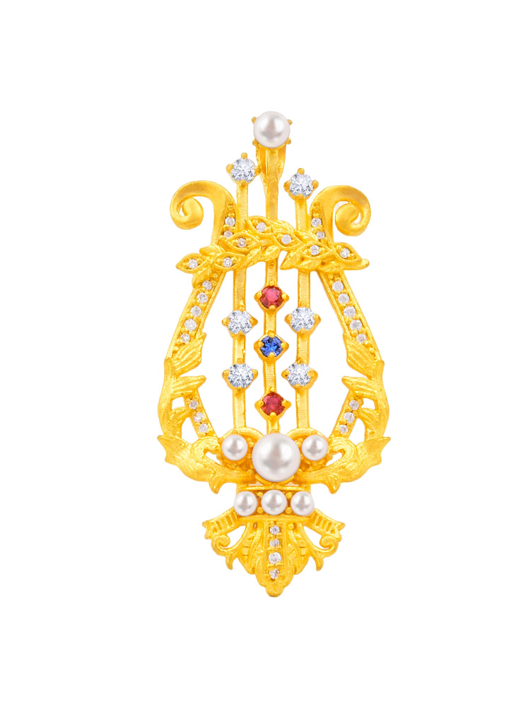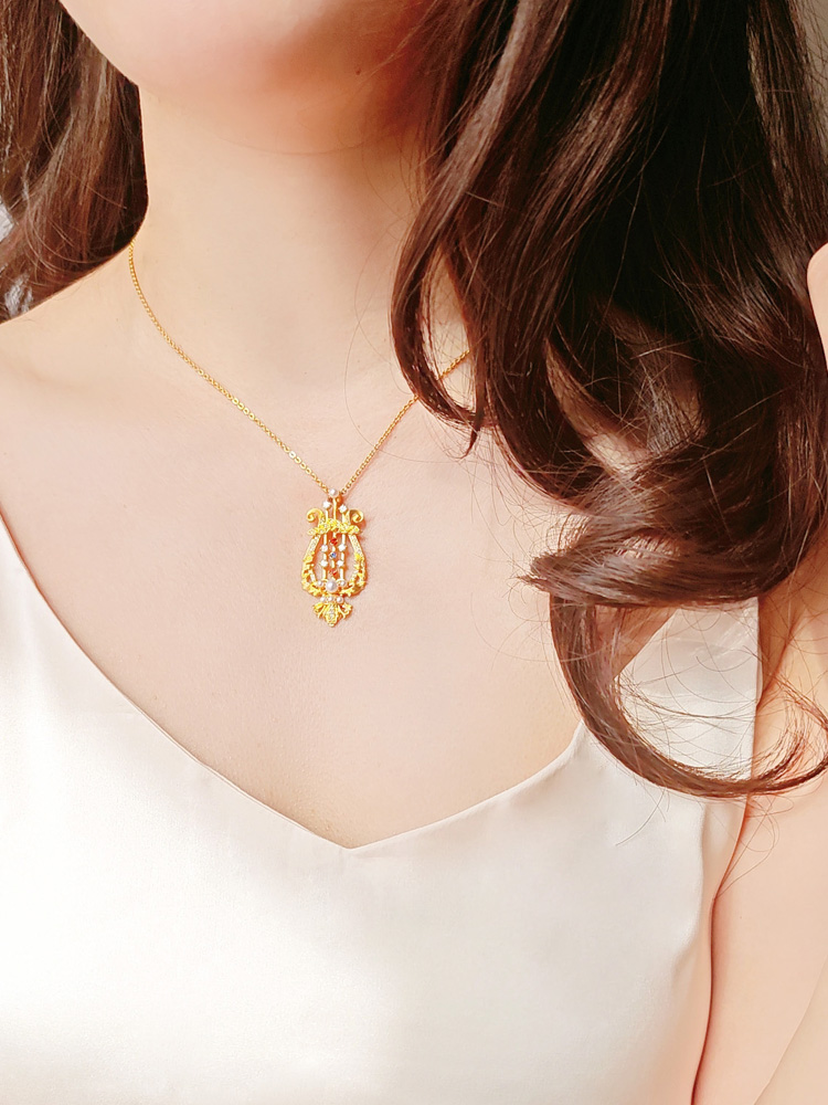 足金竖琴吊坠