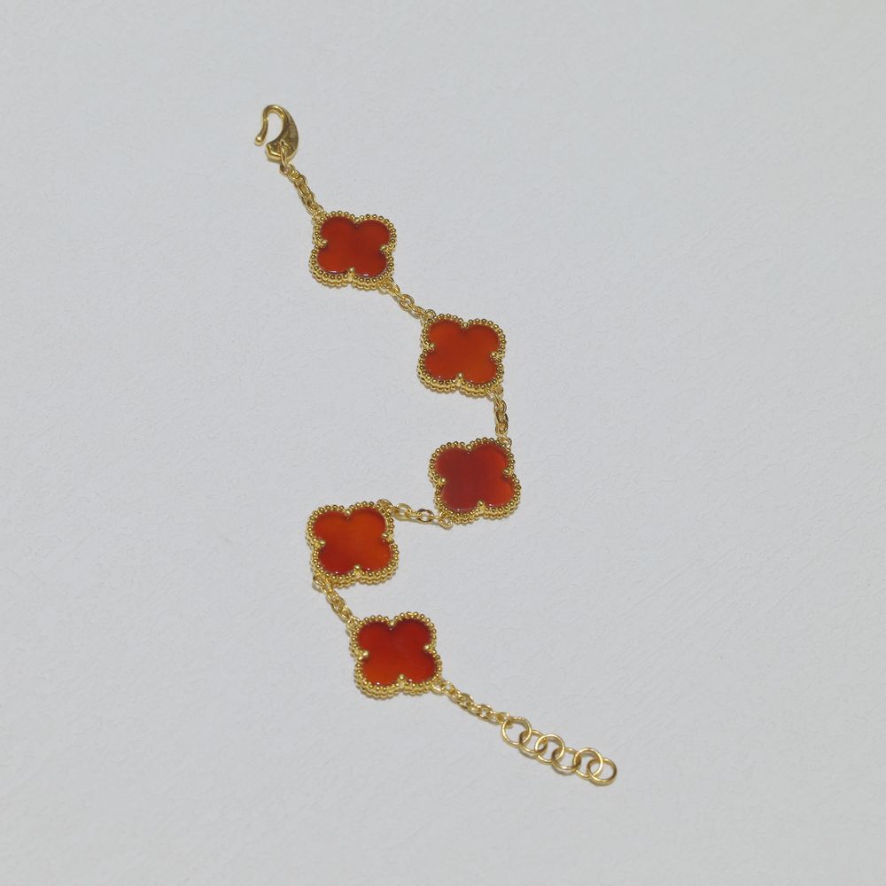 足金四叶草五花手链 红玛瑙