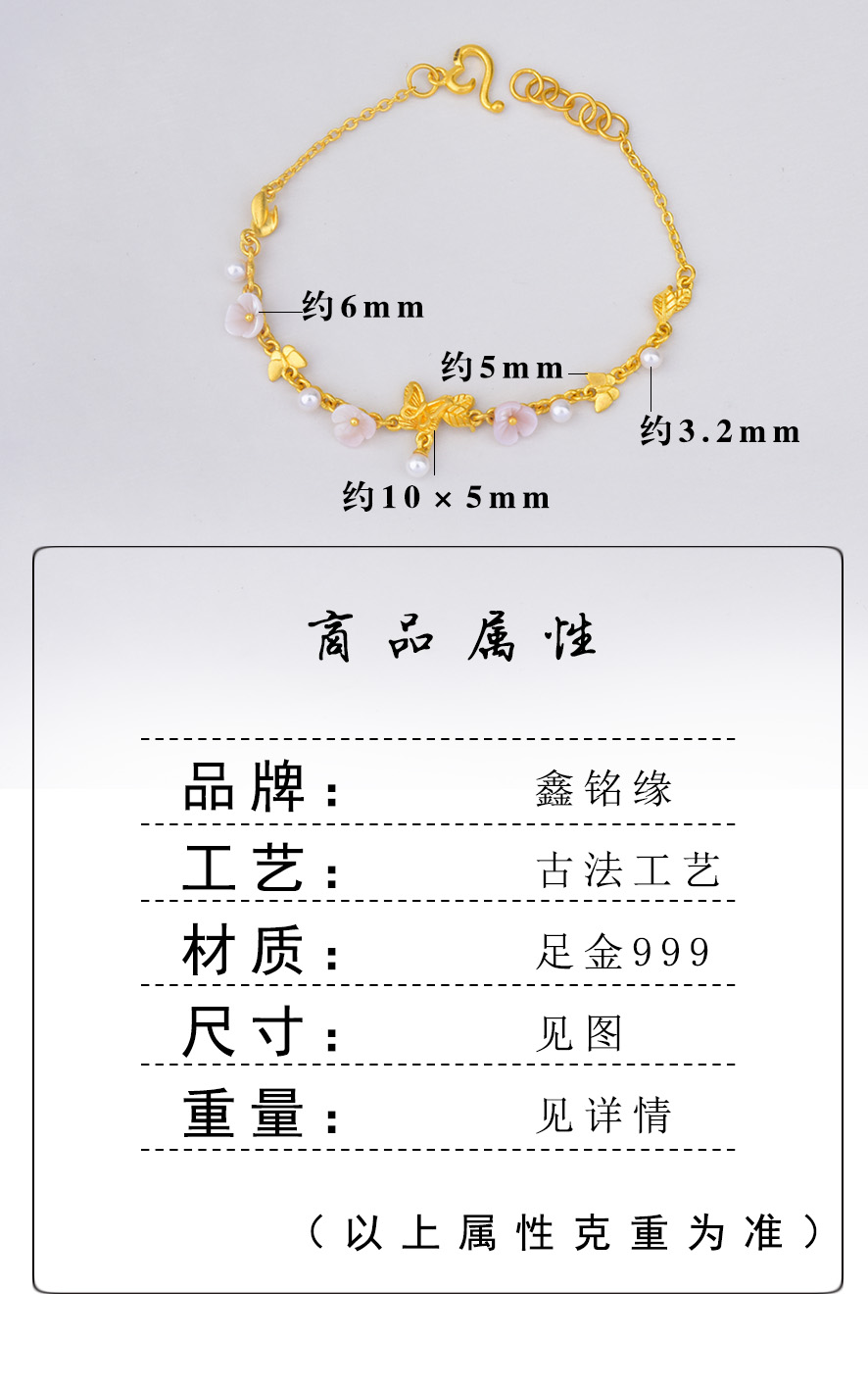足金花蝶语手链