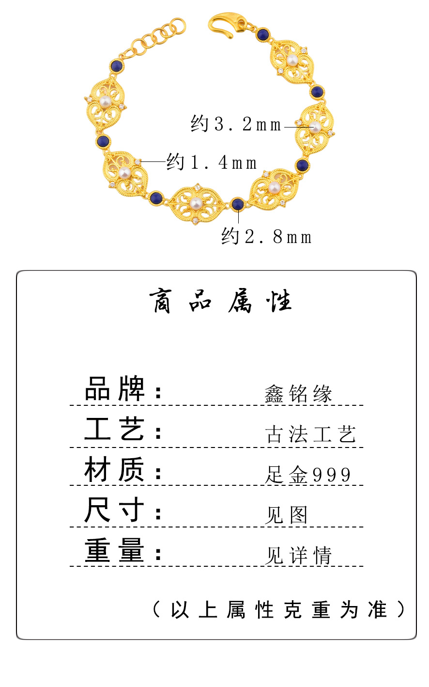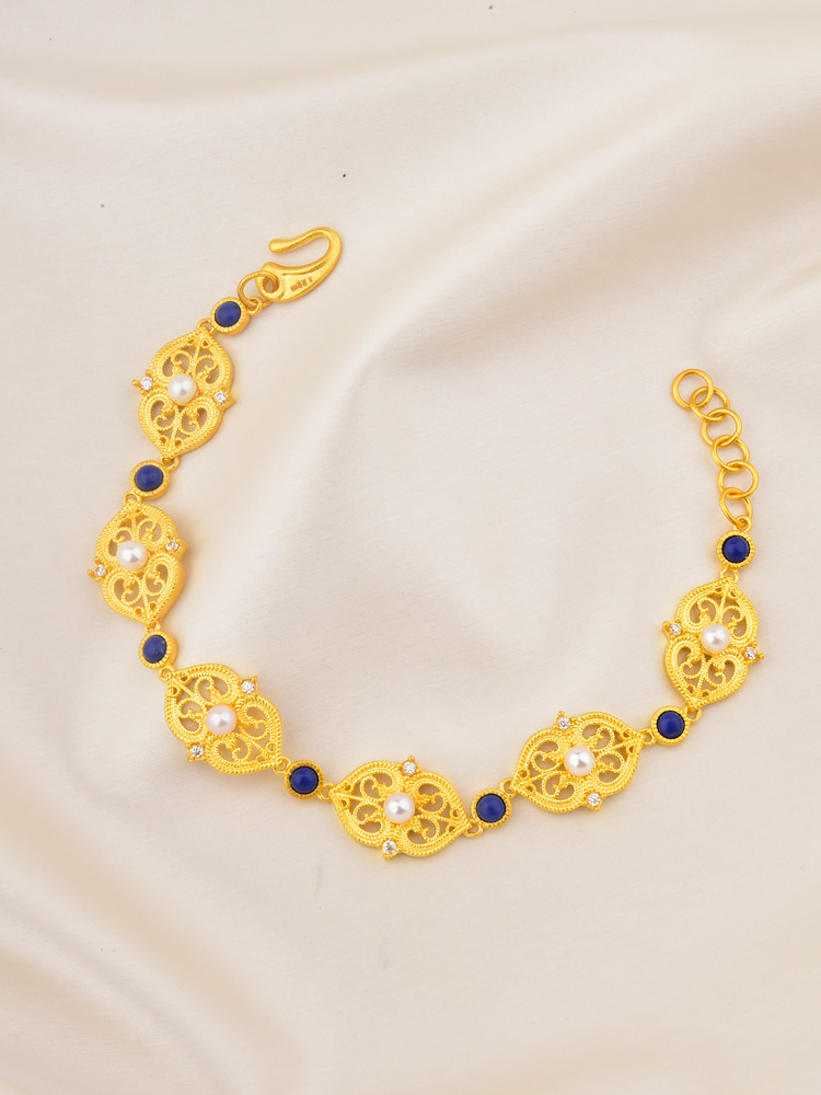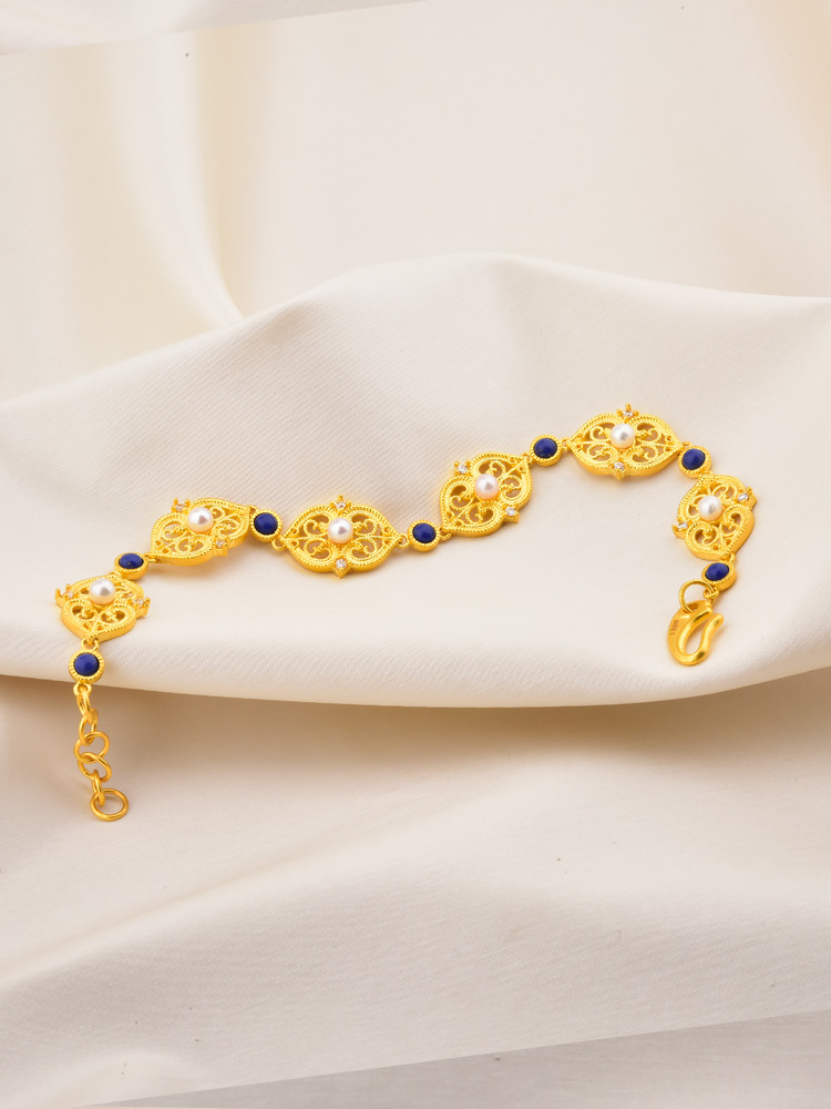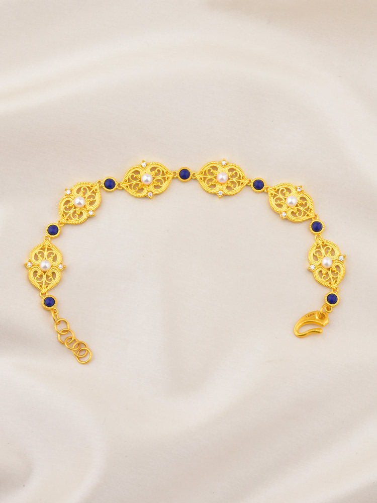 足金点钻洛可可手链
