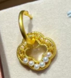 足金镂空珍珠四叶草耳钉