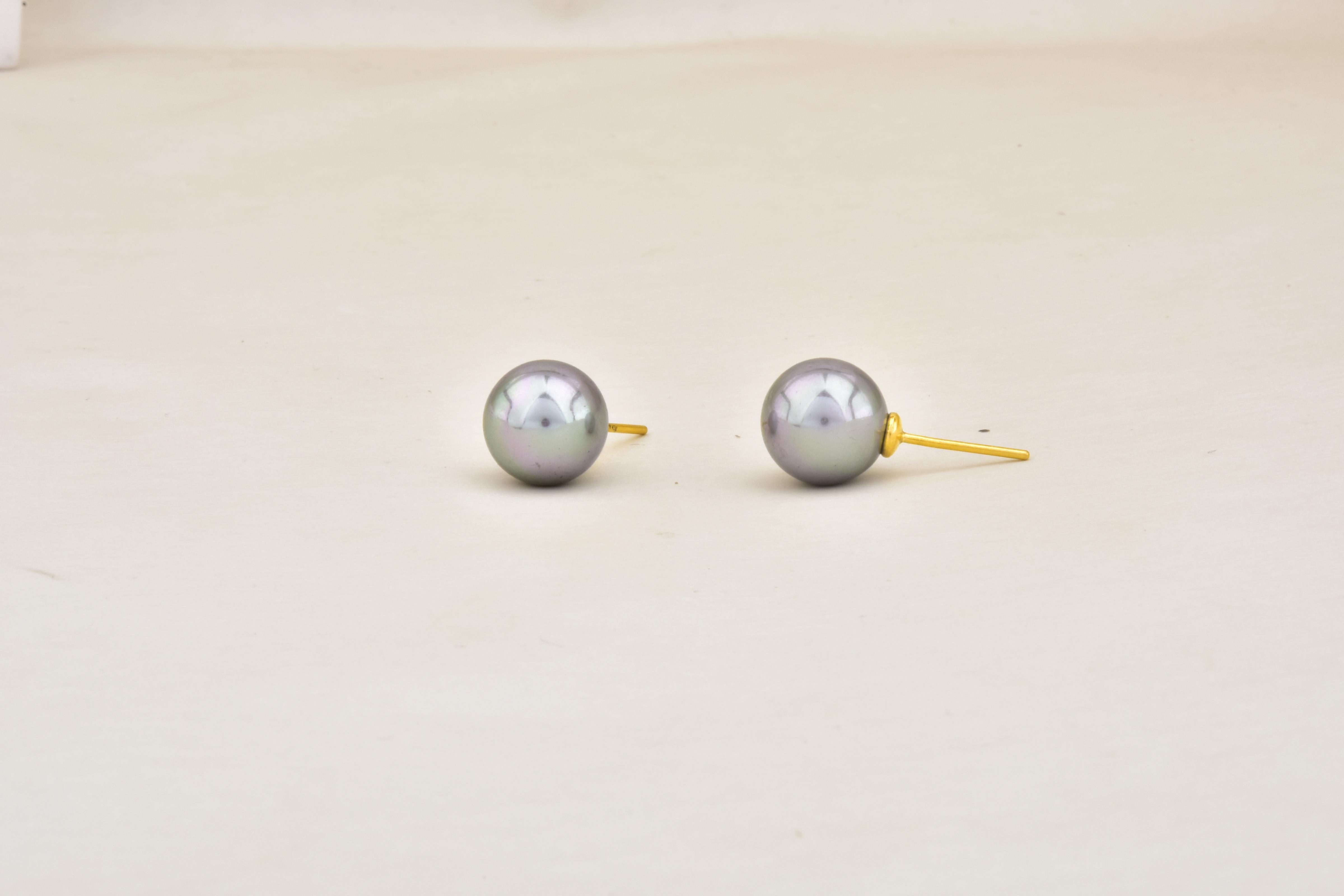 足金灰色贝珠耳钉