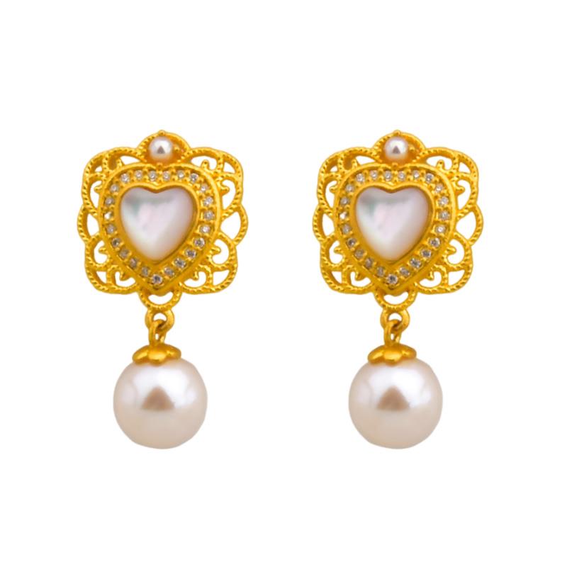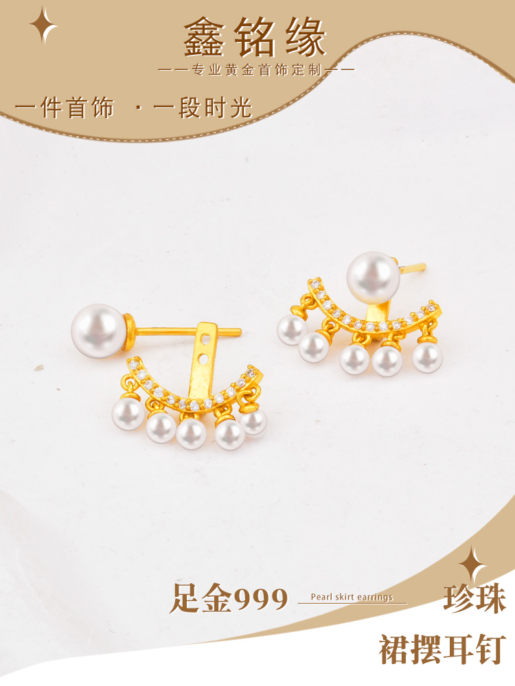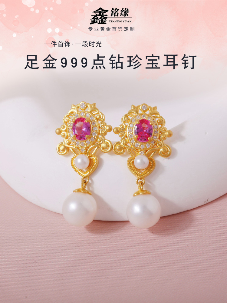 足金珍宝点钻珍珠耳钉