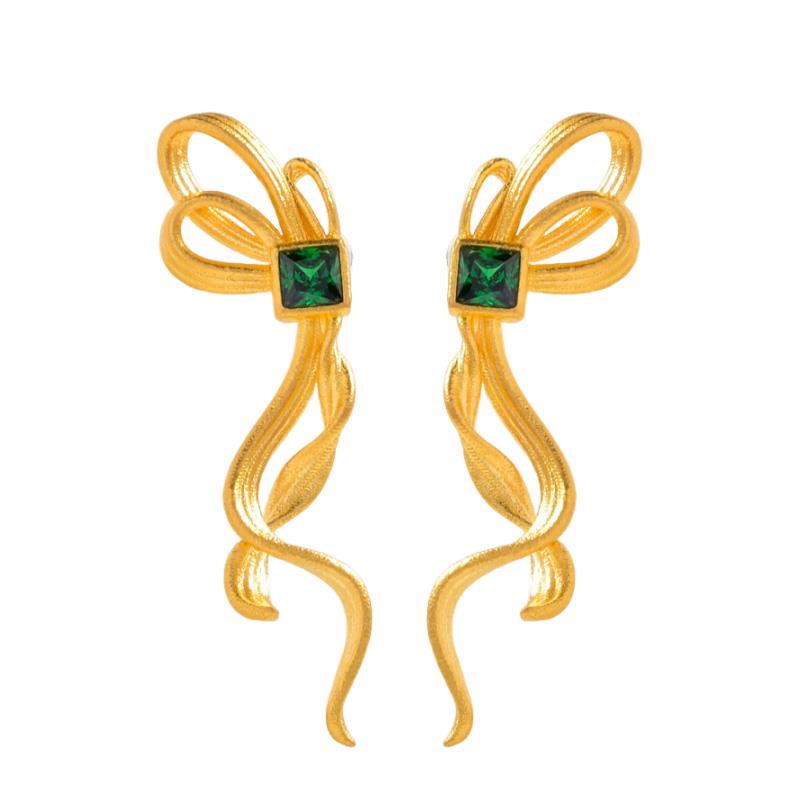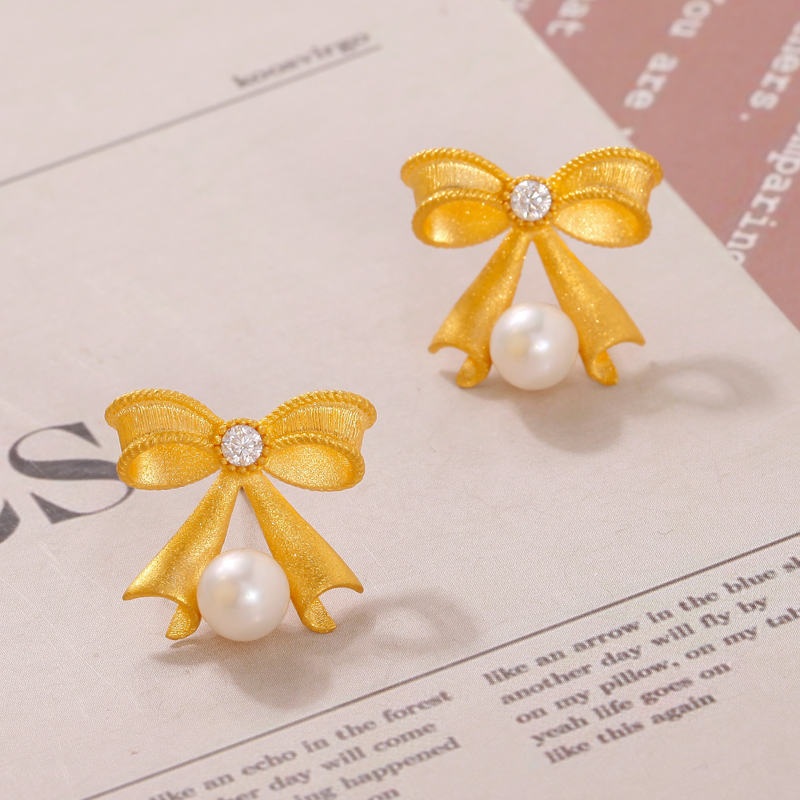 足金蝴蝶结丝带耳钉
