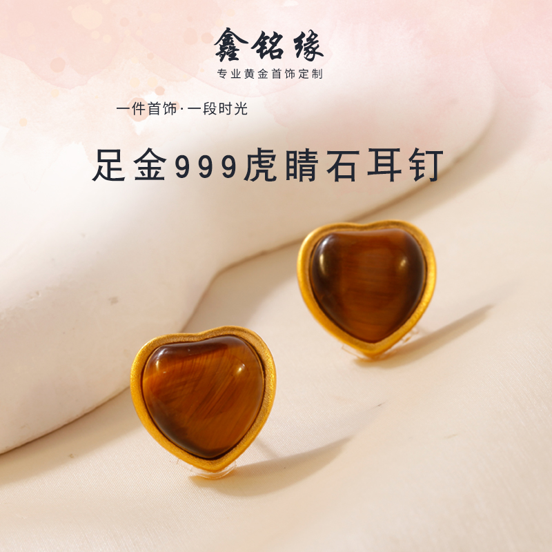 心形虎睛石耳钉