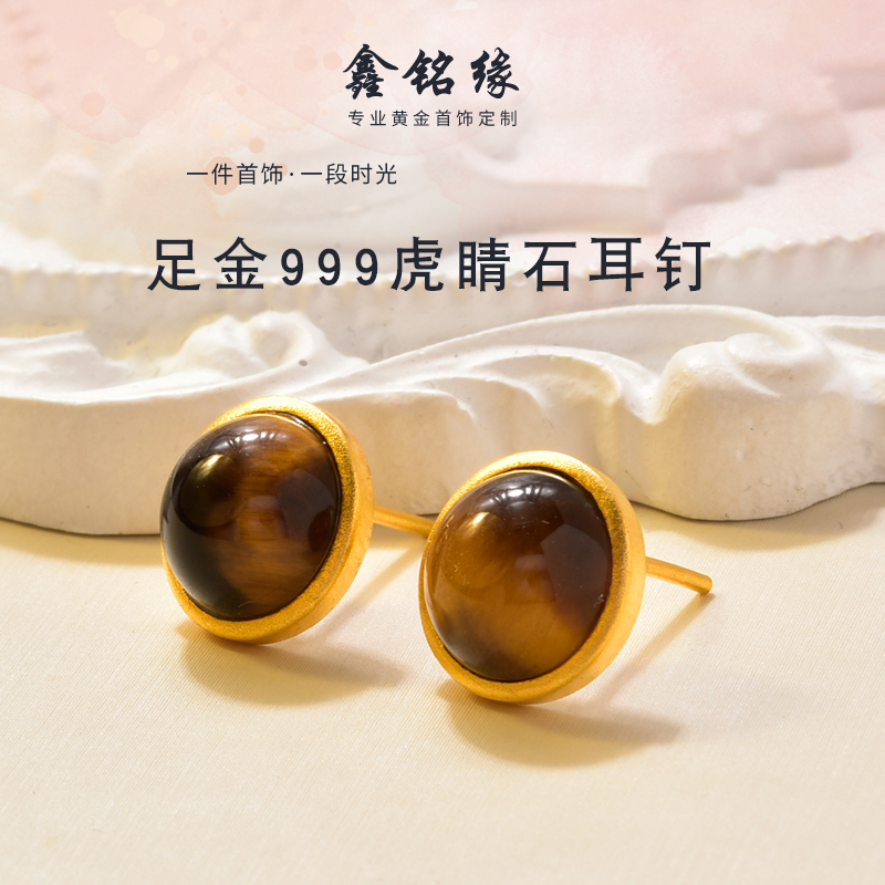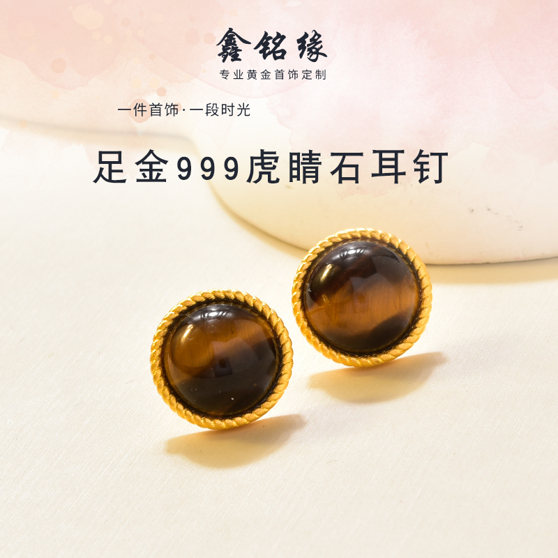 圆形虎睛石耳钉