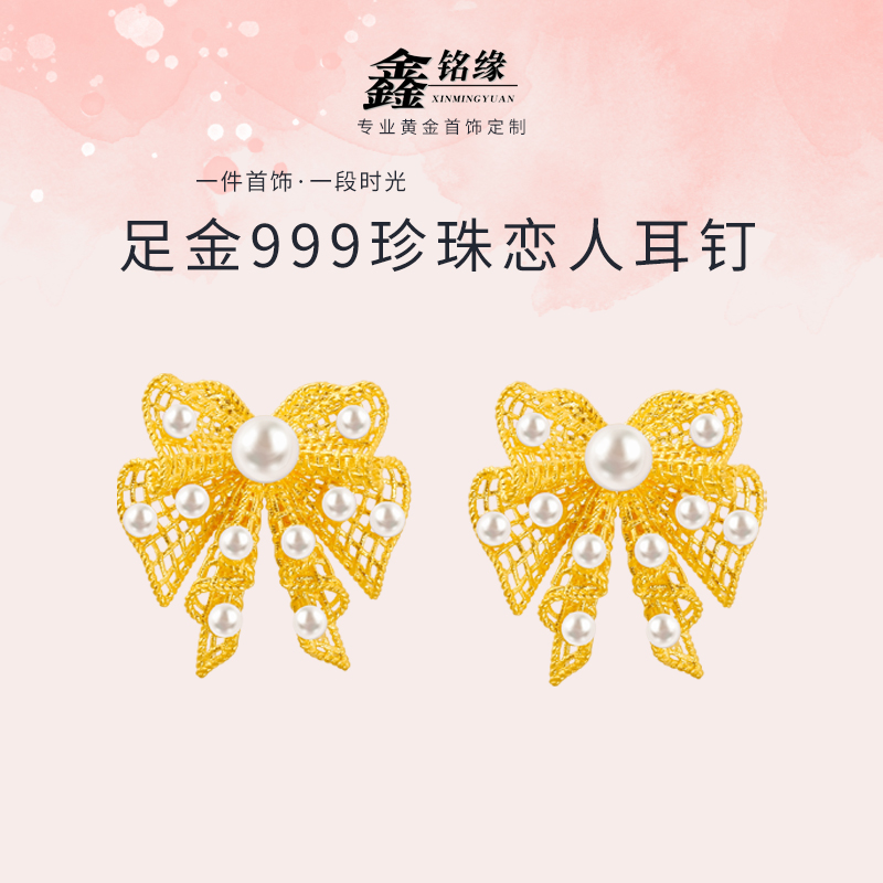足金珍珠蝴蝶恋人耳钉