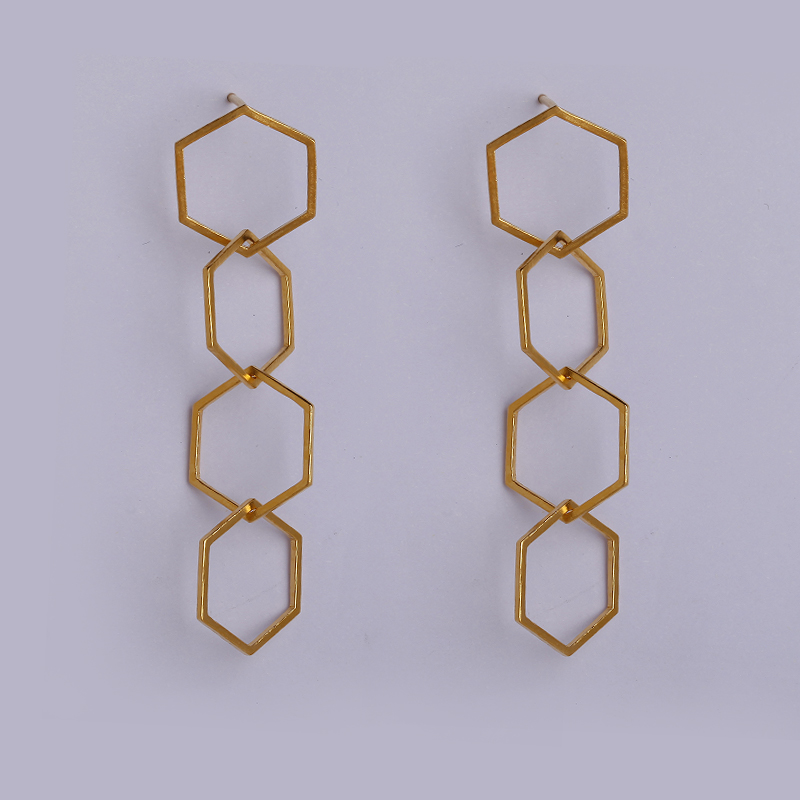 足金六边形耳坠