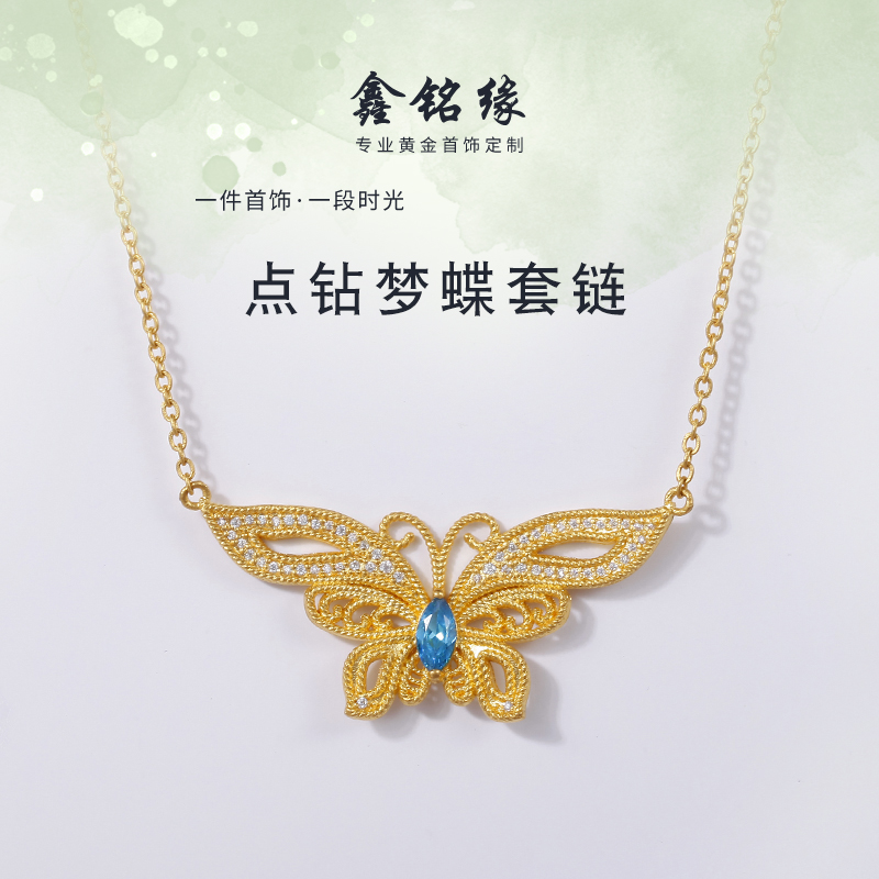 足金点钻梦蝶项链