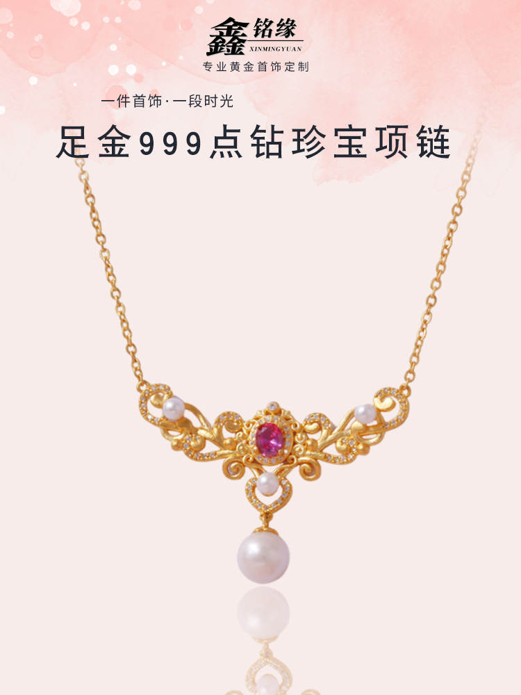 足金珍宝点钻珍珠项链