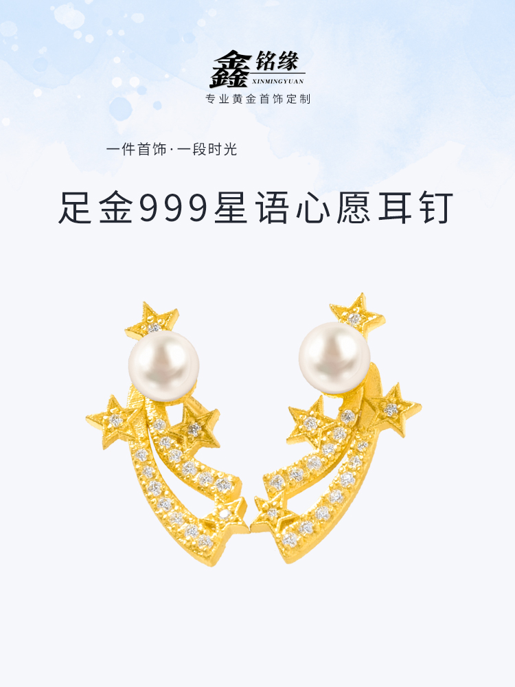 足金星语心愿耳钉