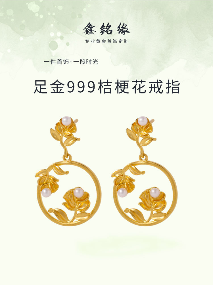足金花月佳期珍珠耳钉