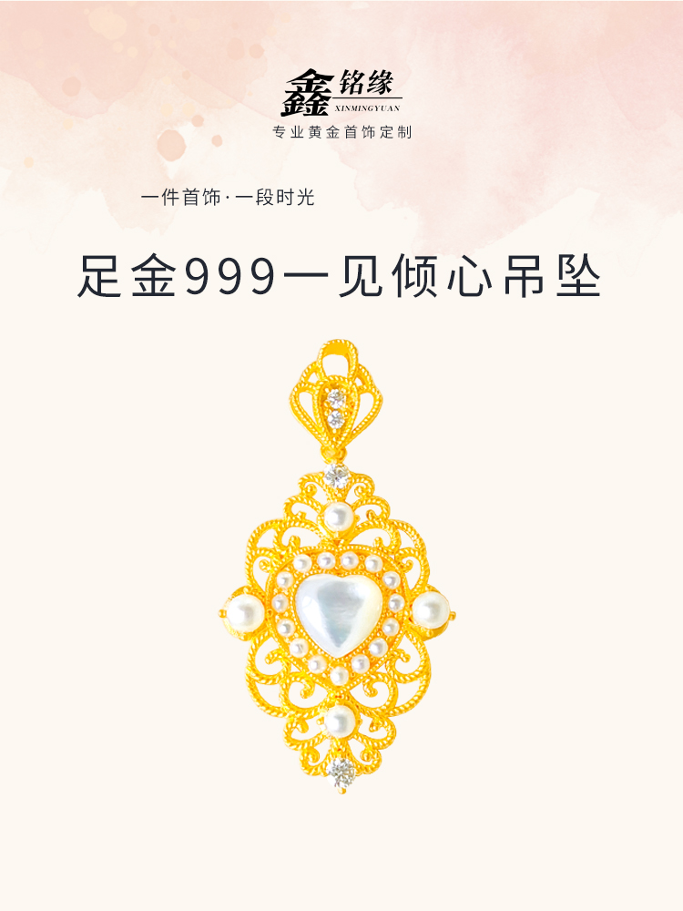 足金一见倾心吊坠