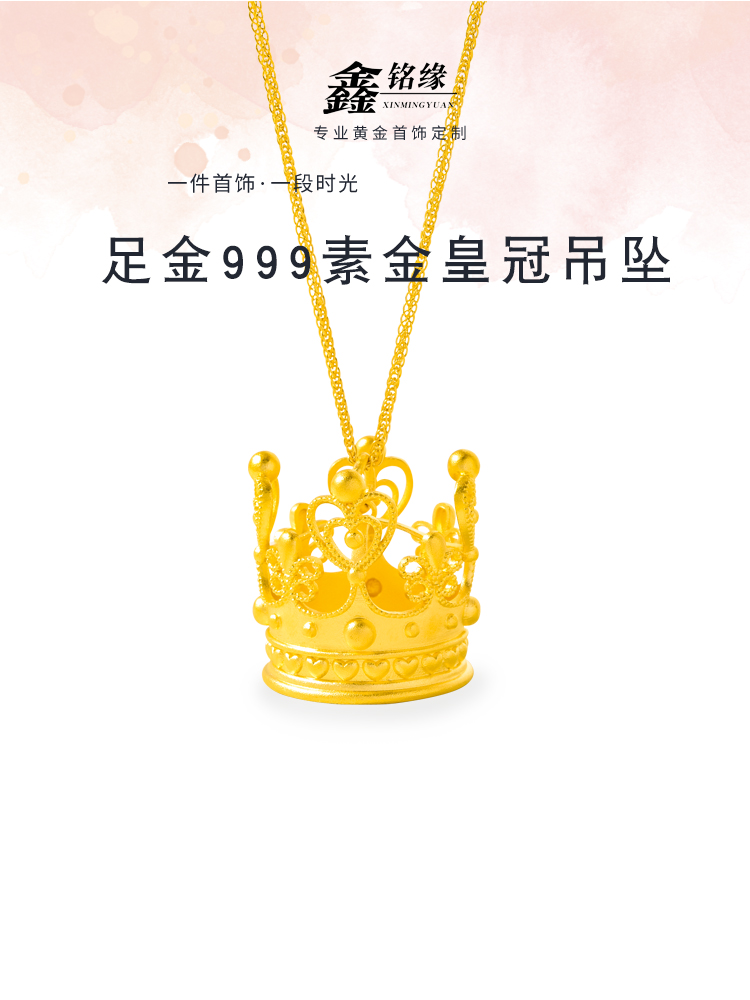 足金素金皇冠吊坠