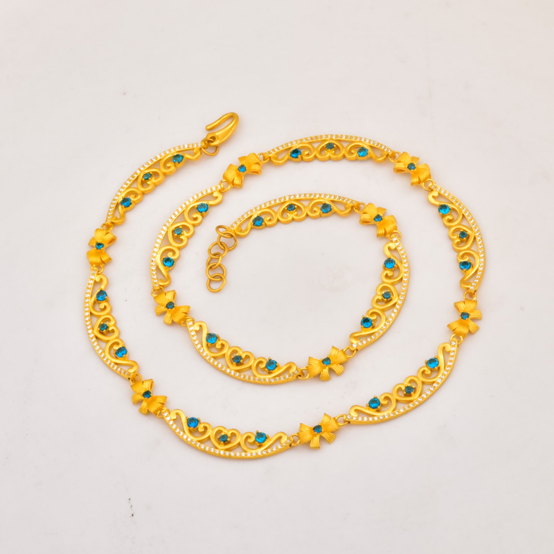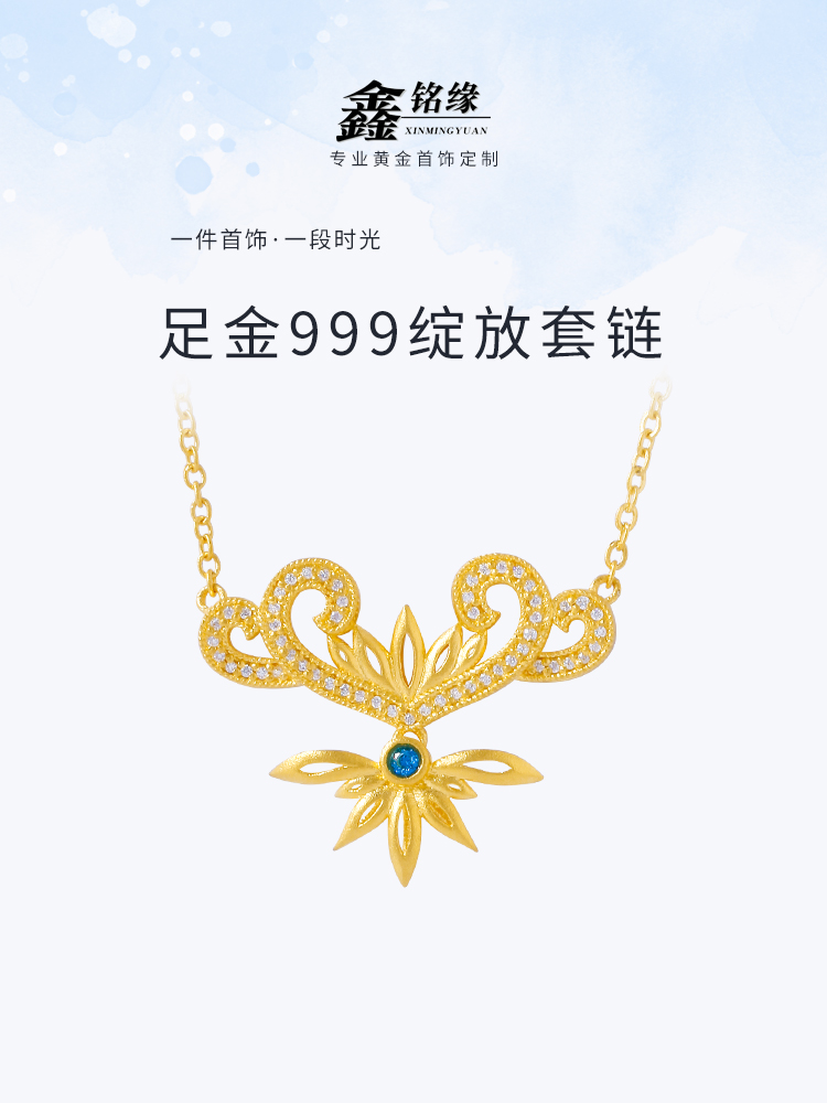 足金绽放点钻项链