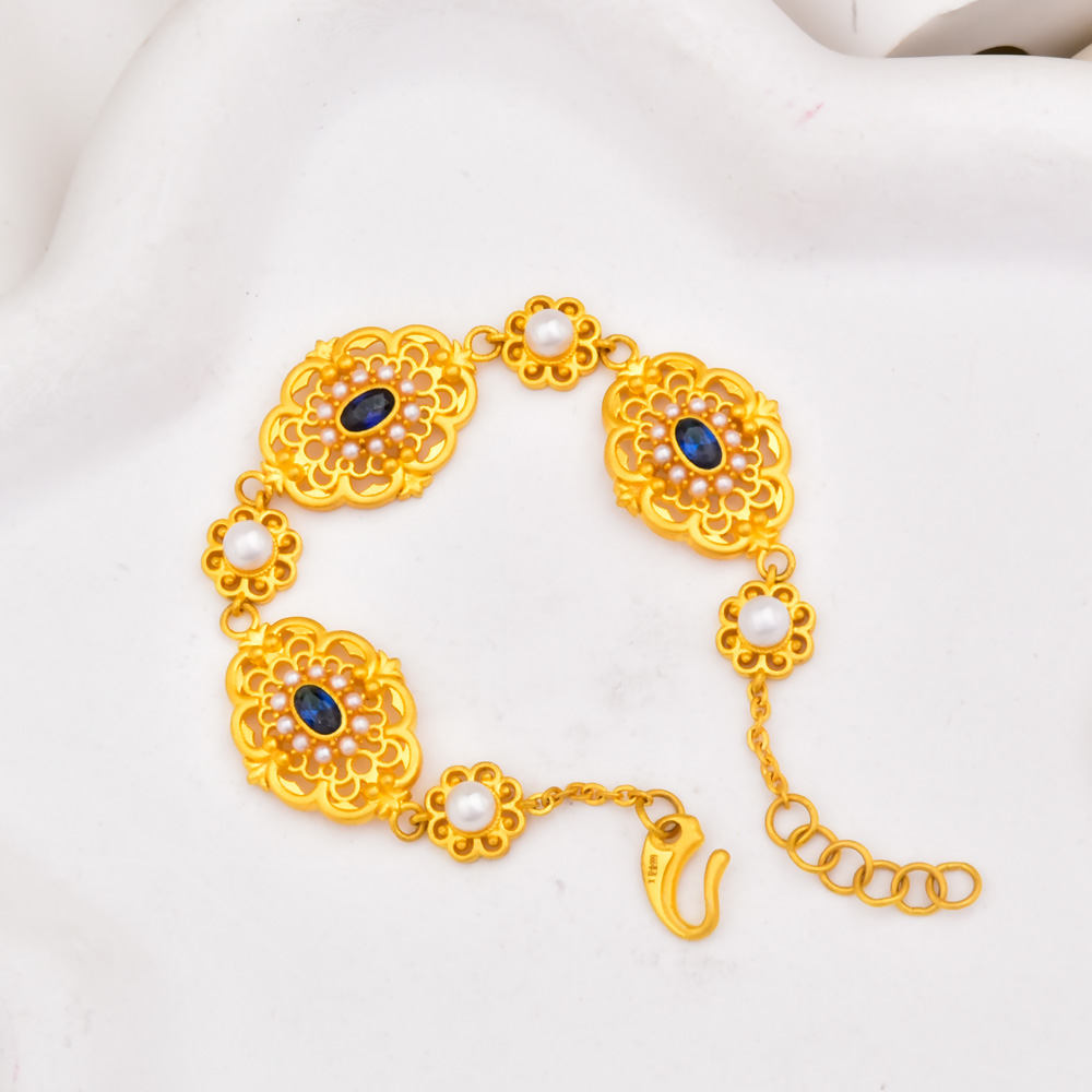 足金珍珠蔚蓝手链