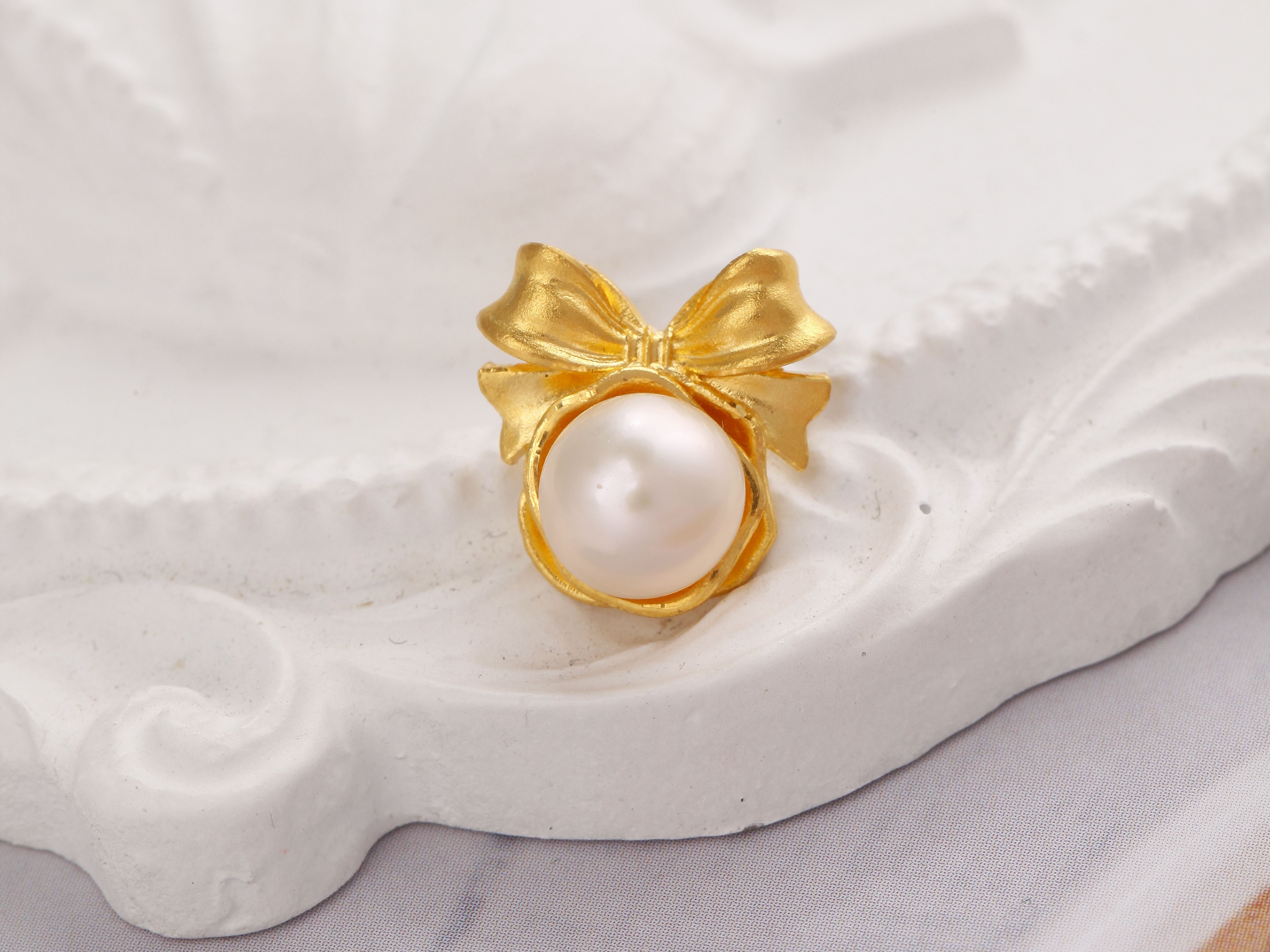 足金蝴蝶结珍珠花吊坠
