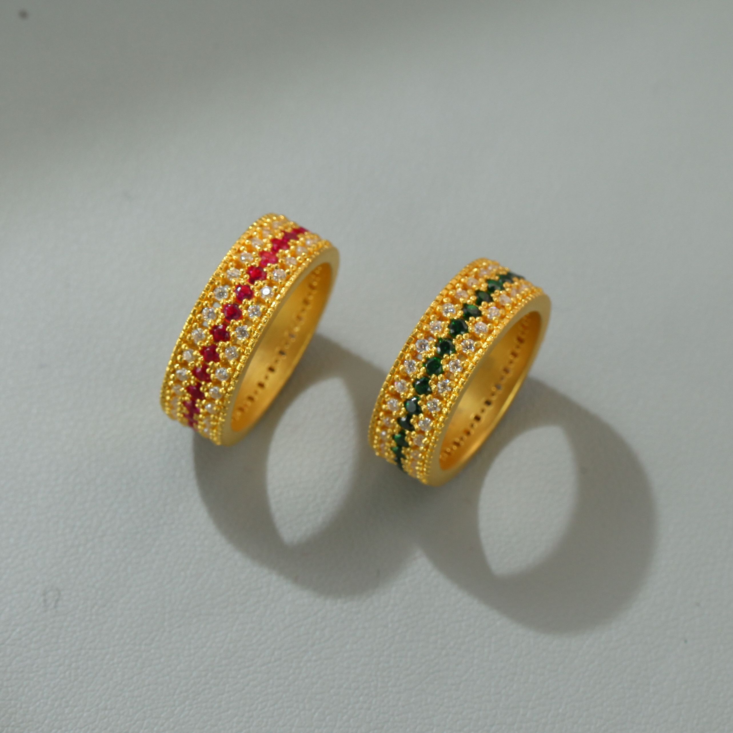 足金红泉点钻戒指