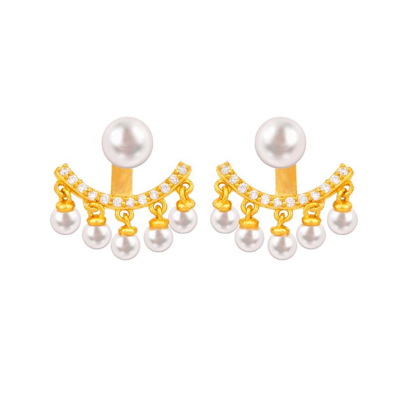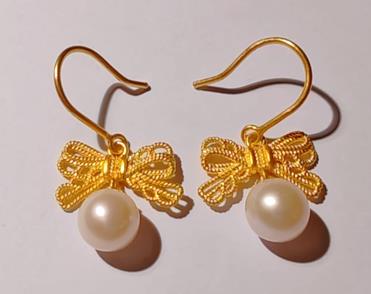 复古蝴蝶结珍珠流苏耳坠(弯钩)