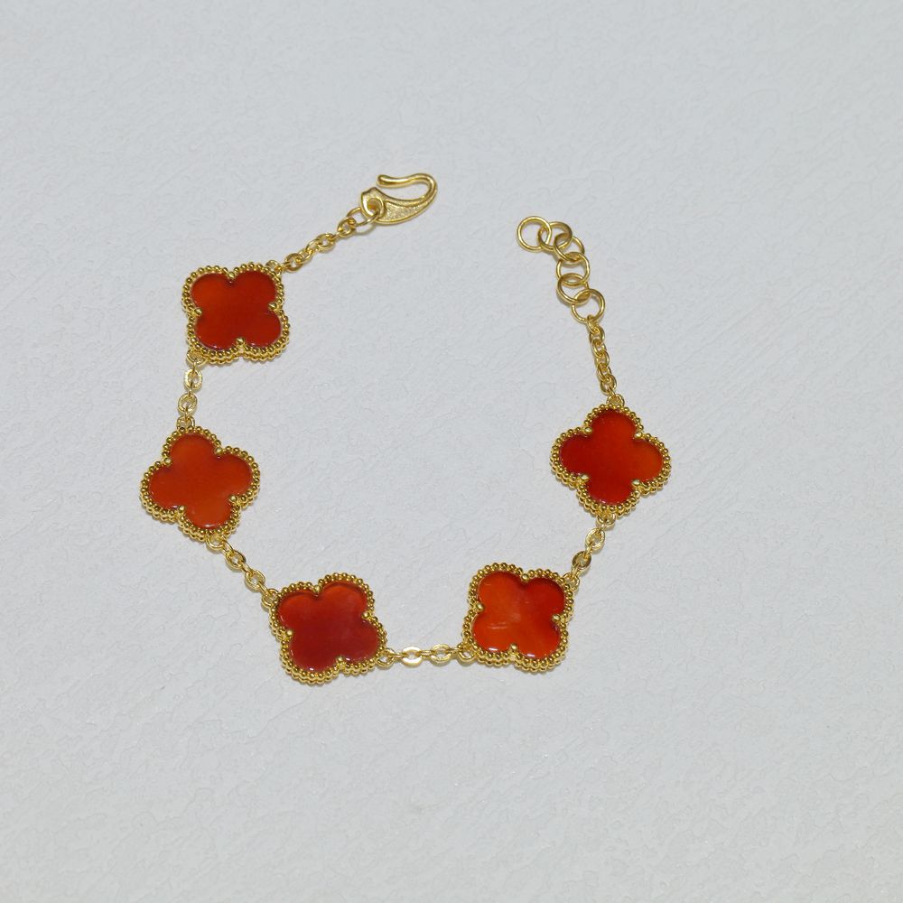 足金四叶草五花手链 红玛瑙