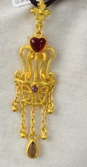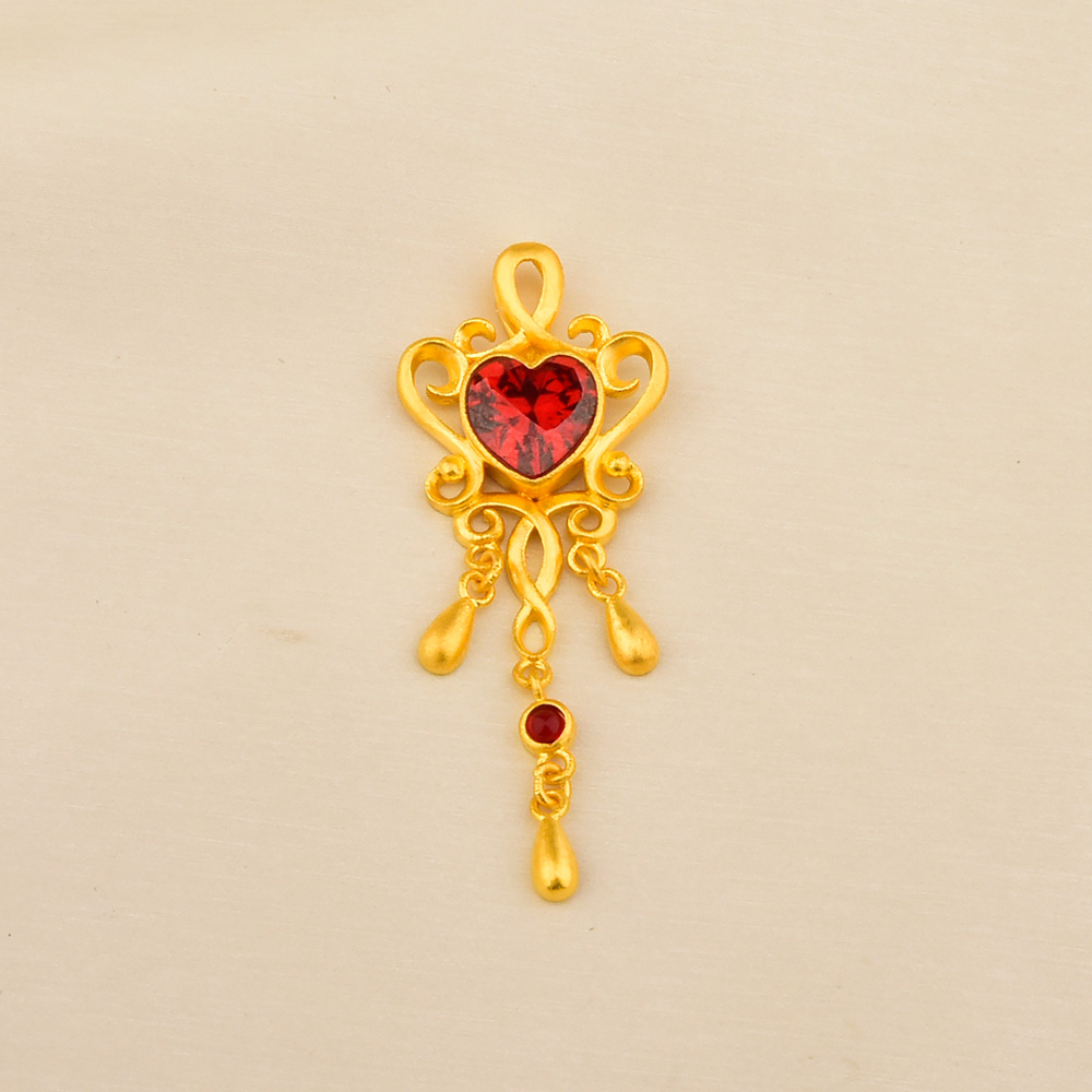 足金红心流苏吊坠