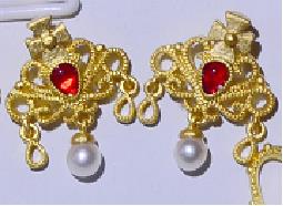 足金红水滴珍珠小吊坠
