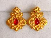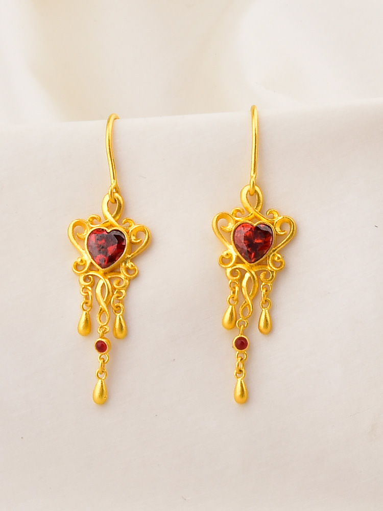足金红水滴耳钉