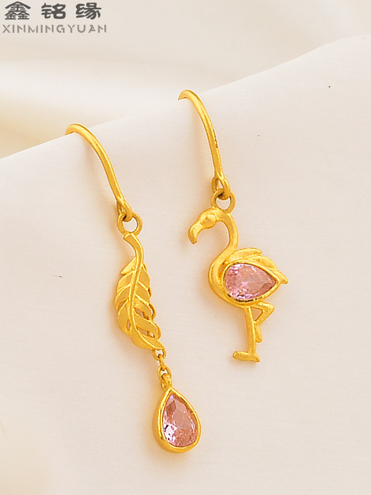 足金火烈鸟耳坠