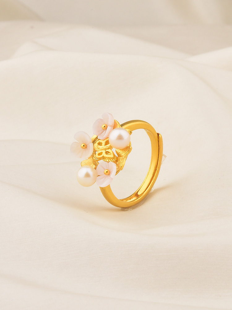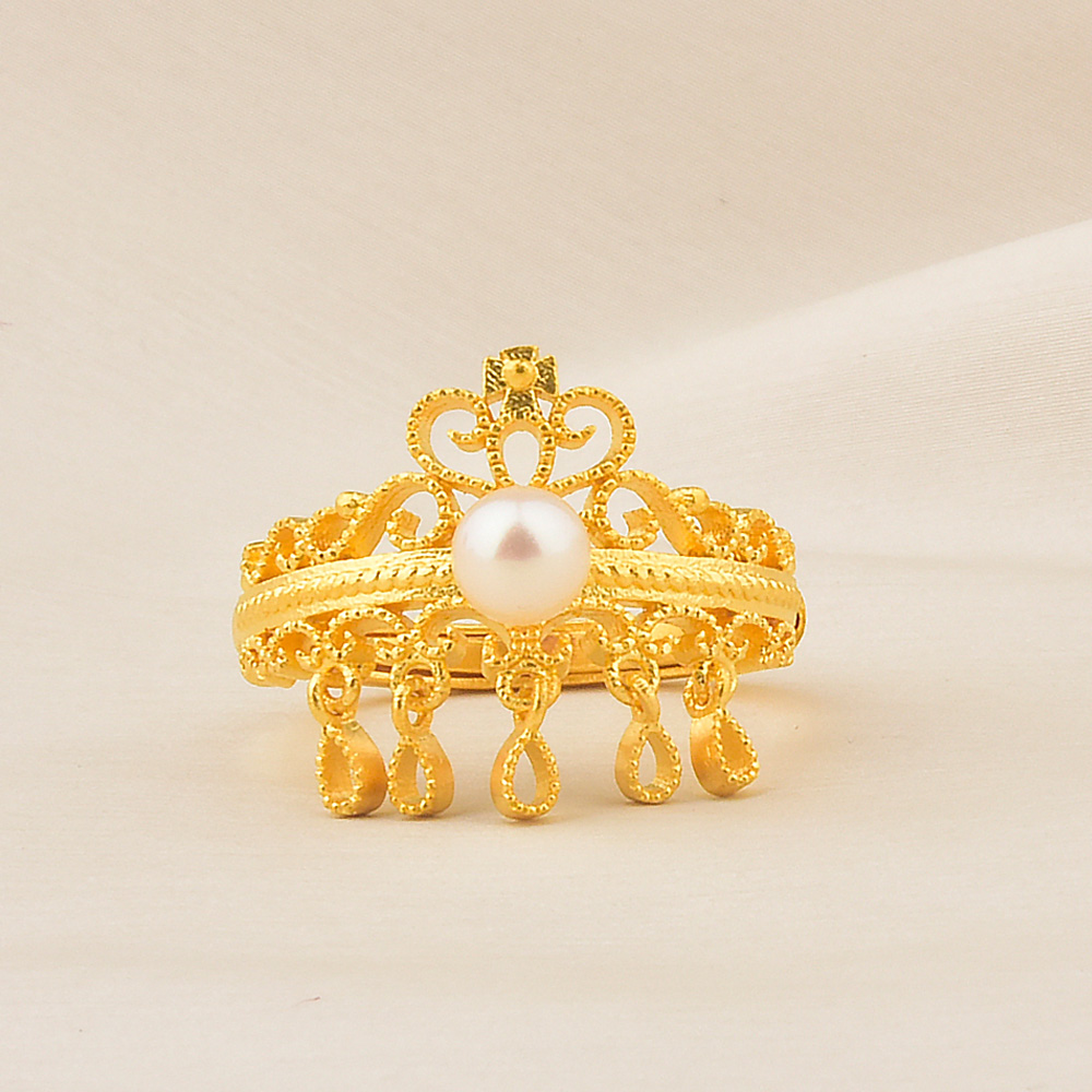 足金珍珠流苏戒指